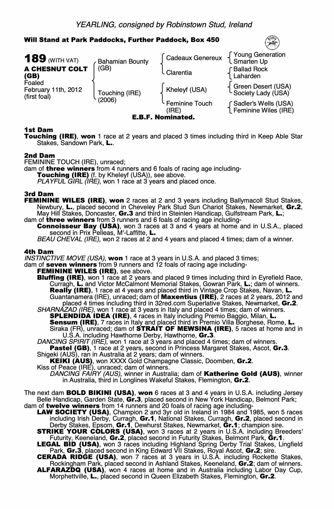 Consignor: Robinstown Stud, Ireland