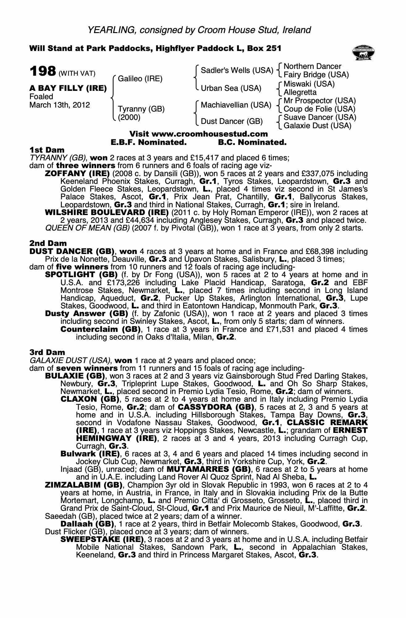 October Yearling Sale, Book 1 2014 lot 107 F. by Dansili (GB) 2013, Croom House Stud, Ireland=>Solis/Litt 700,000 gns
