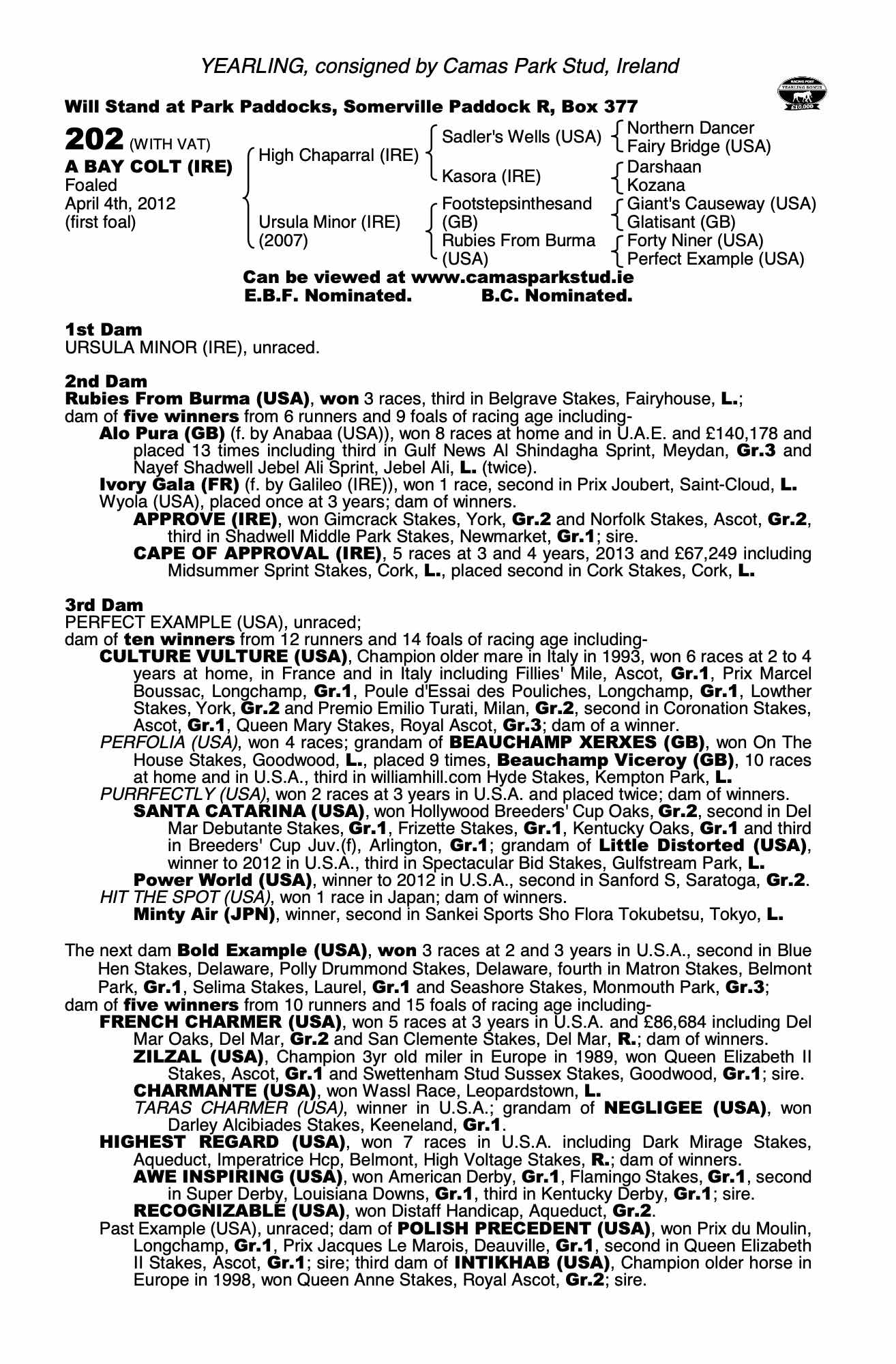 Consignor: Camas Park Stud, Ireland
