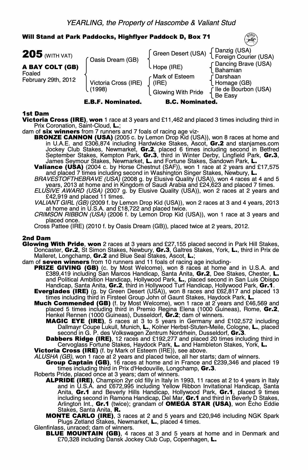 February Sale 2012 lot 169 Bravestofthebrave (USA) (G. by Elusive Quality (USA)), Clarehaven Stables (J. Gosden)=>Michael Wigham 11,000 gns