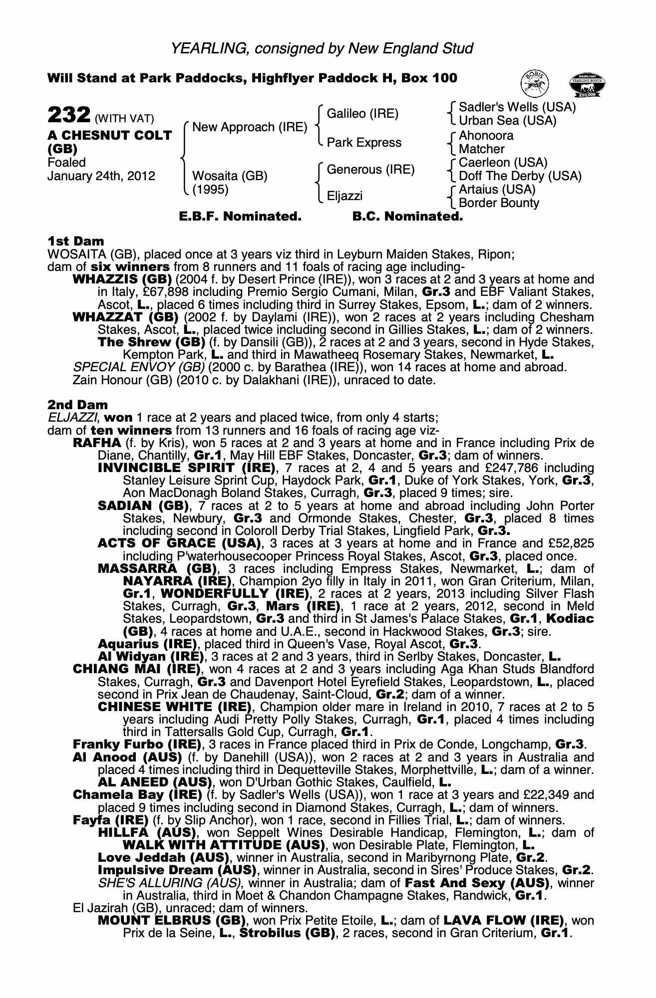 October Yearling Sale Book 1, 2015 lot 21 F. by Sepoy (AUS) 2014, New England Stud=>Tony Nerses 250,000 gns