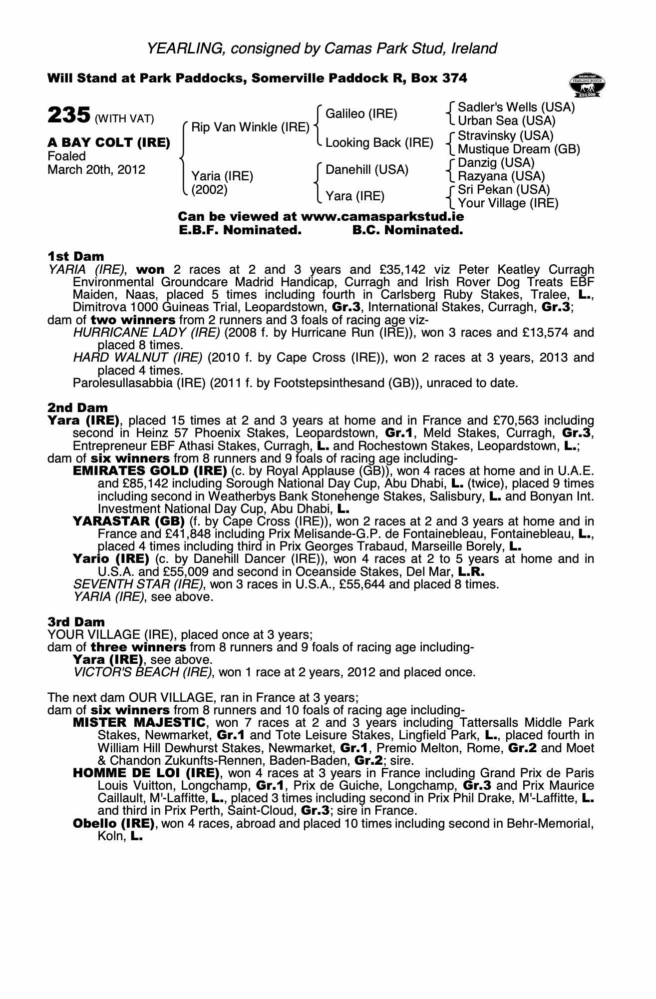 Consignor: Camas Park Stud, Ireland