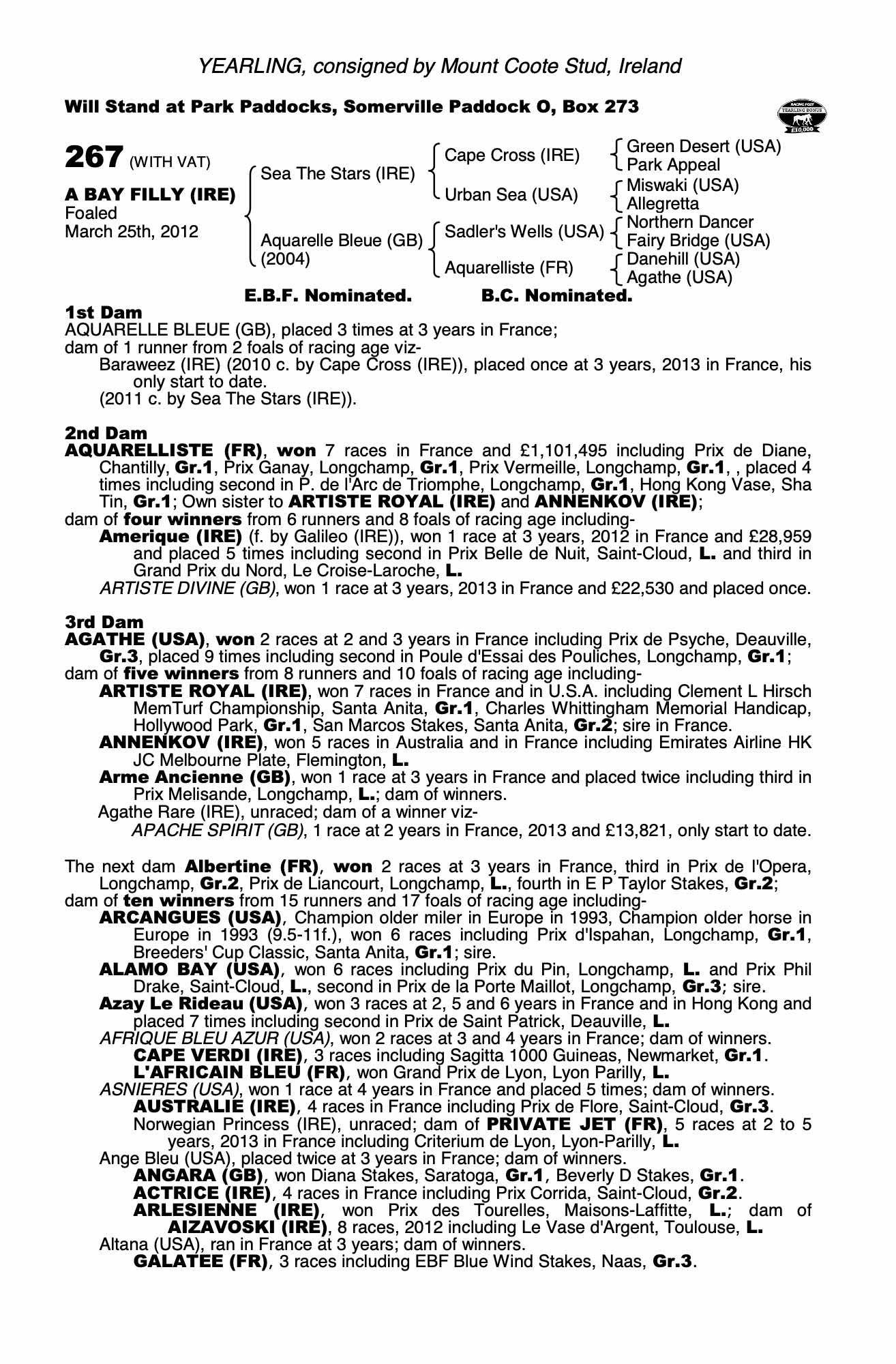 October Yearling Sale, Book 1 2014 lot 175 F. 2013, Mount Coote Stud, Ireland=>Shadwell Estate Company 400,000 gns