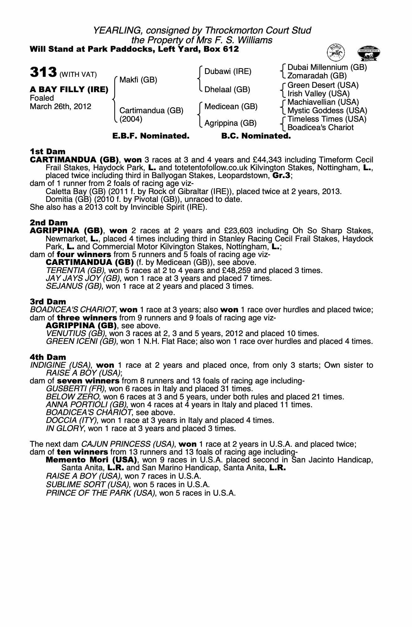 October Yearling Sale Book 1, 2015 lot 111 F. by Cacique (IRE) 2014, Throckmorton Court Stud=>John & Jake Warren 160,000 gns
