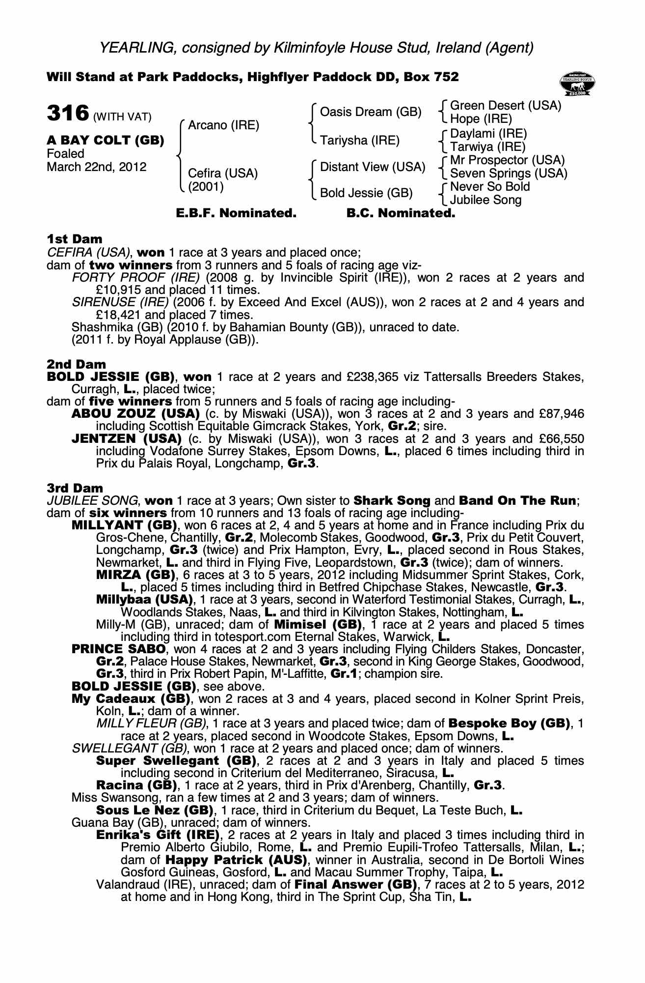 Consignor: Kilminfoyle House Stud, Ireland (Agent)