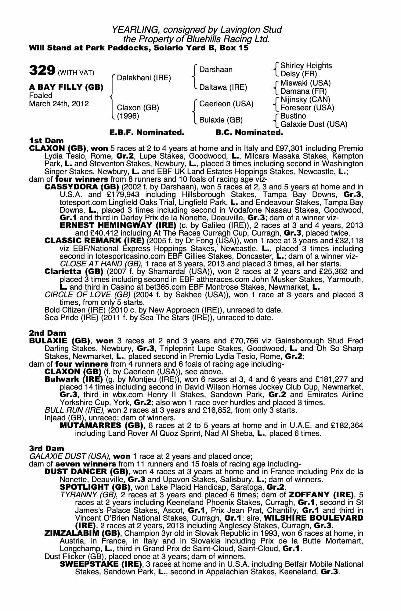 October Yearling Sale, Book 1 2012 lot 473 F. by Sea The Stars (IRE) 2011, Lavington Stud=>Lot Not Sold 195,000 gns