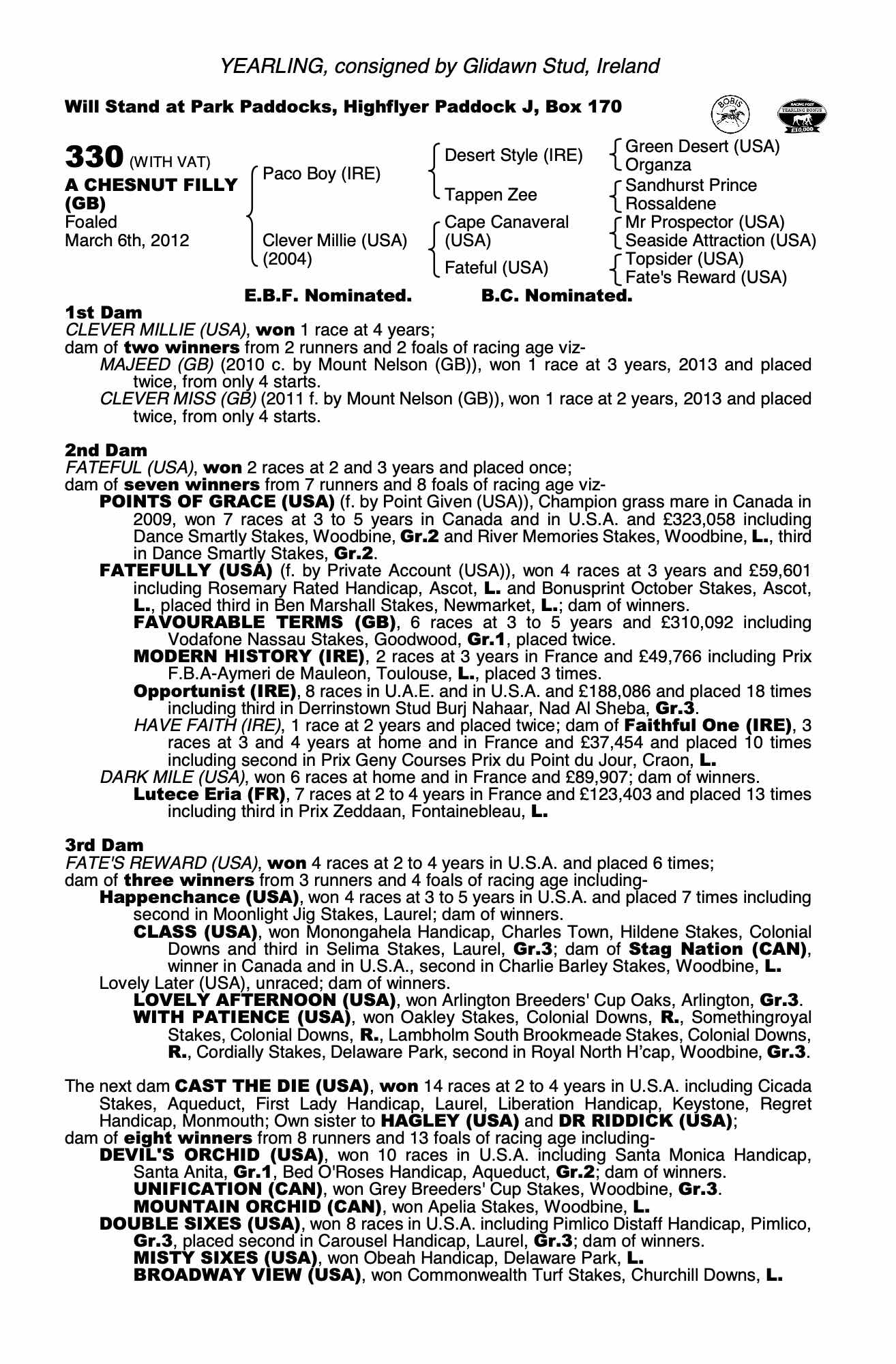 July Sale 2014 lot 411 Clever Miss (GB) (F. by Mount Nelson (GB)), AJM Horseracing Ltd.=>Vendor 5,000 gns