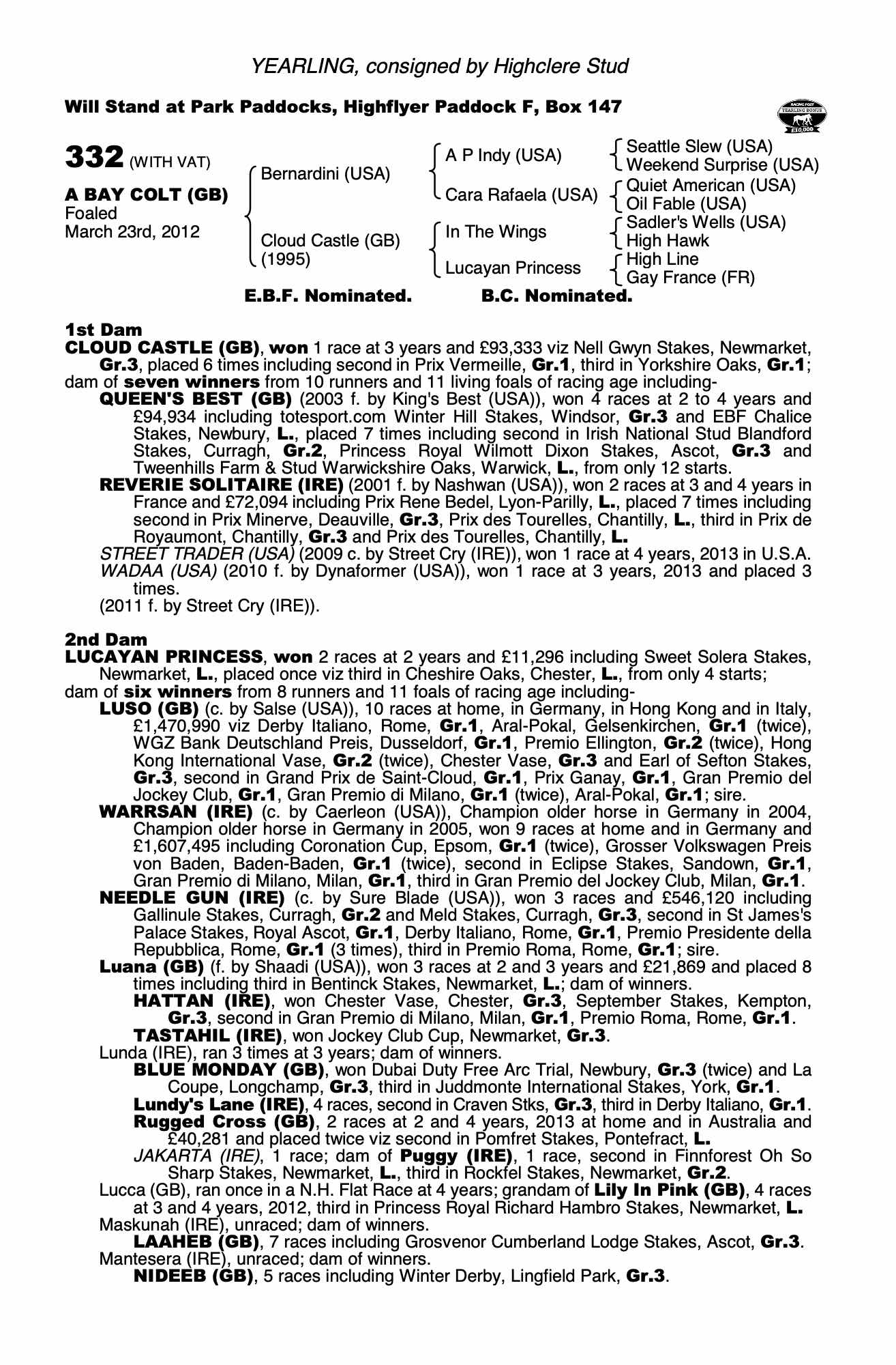 Houghton Yearling Sale 2001 lot 22 C. by Machiavellian (USA) , Mount Coote Stud, Ireland (Agent)=>Gainsborough Stud Management 240,000 gns
