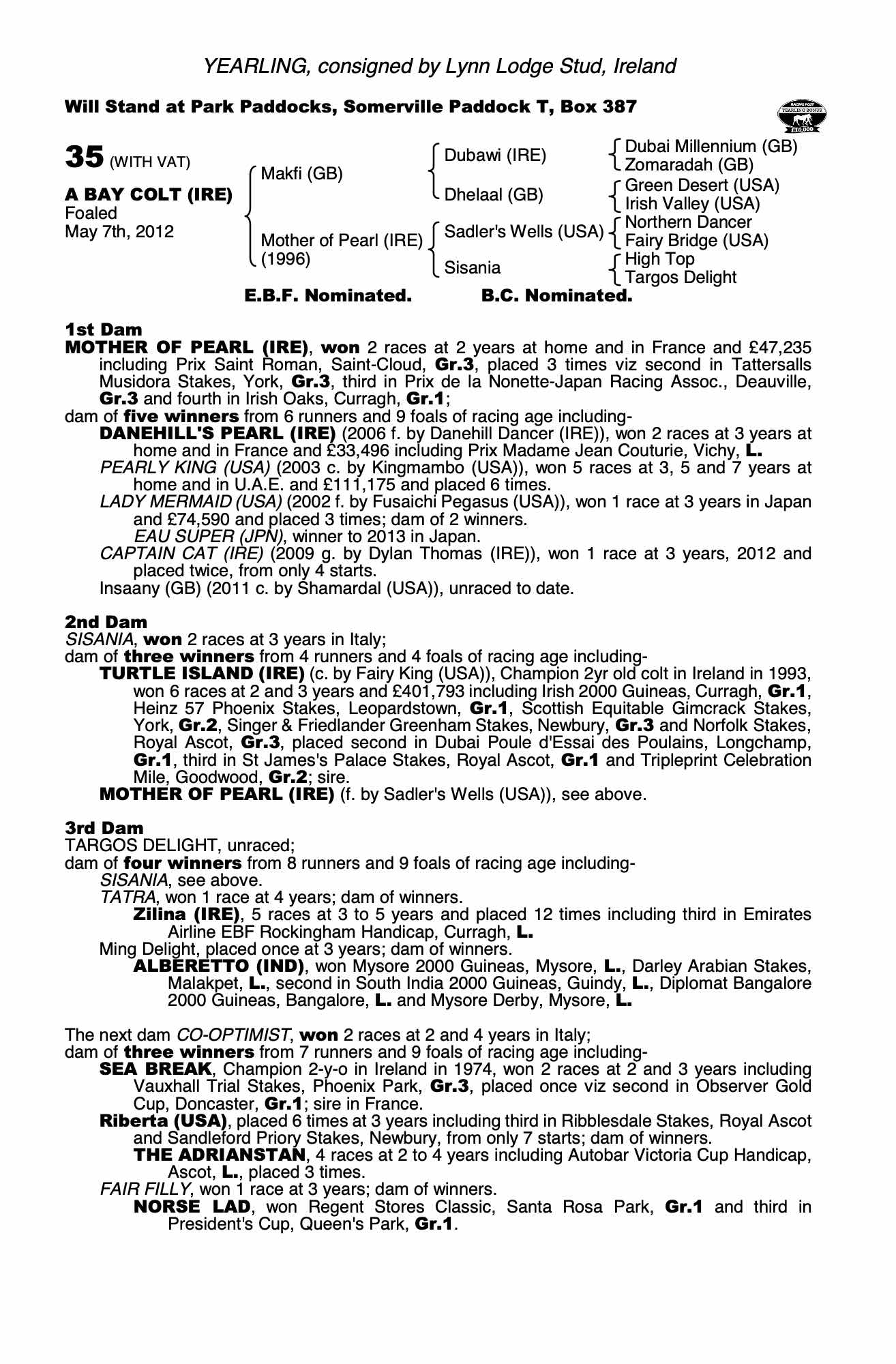October Yearling Sale, Book 2 2012 lot 810 C. by Shamardal (USA) 2011, Tweenhills Farm & Stud=>Shadwell Estate Company 65,000 gns