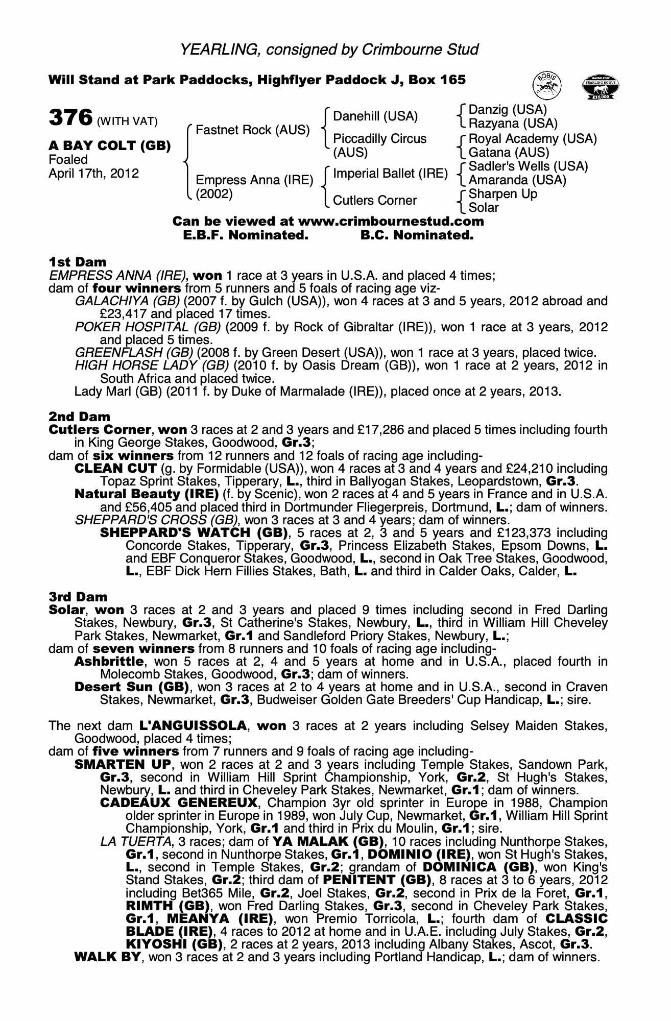 Consignor: Crimbourne Stud