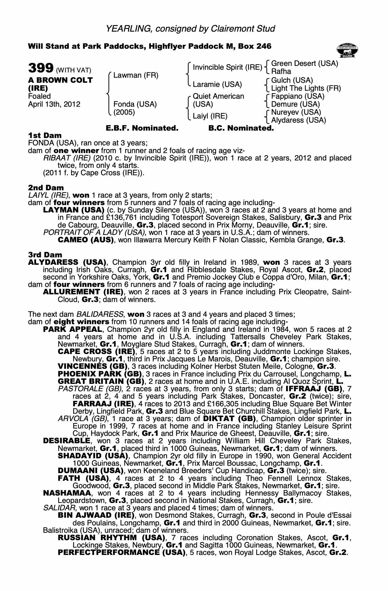 October Yearling Sale, Book 1 2011 lot 87 C. by Invincible Spirit (IRE) 2010, The Castlebridge Consignment=>Shadwell Estate Company 280,000 gns