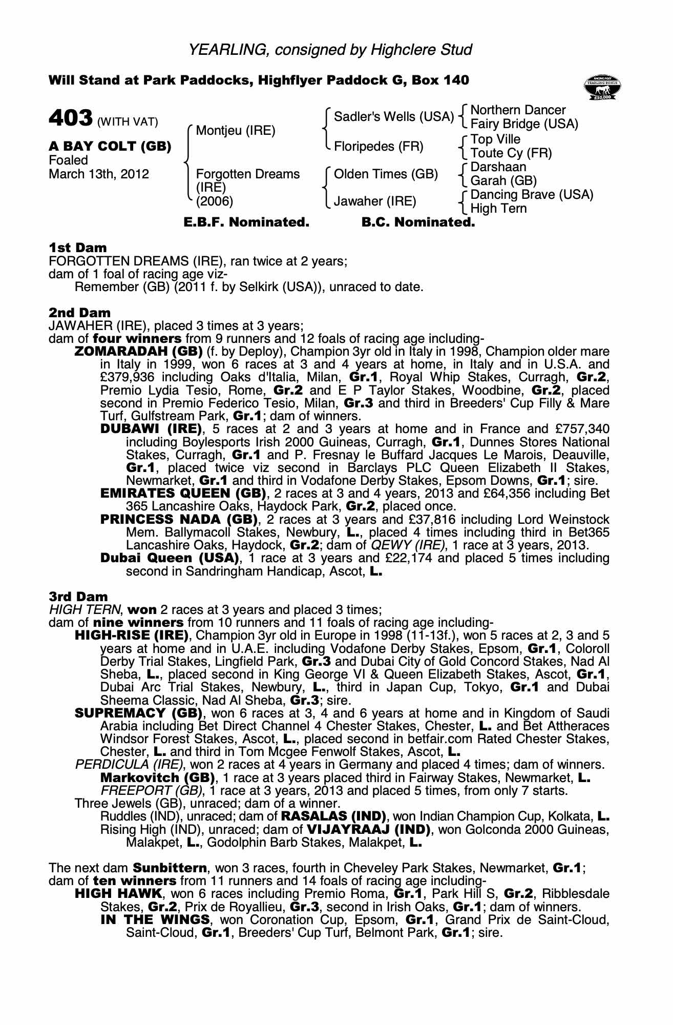 October Yearling Sale, Book 2 2012 lot 1586 F. by Selkirk (USA) 2011, Voute Sales Ltd. (Agent)=>Rabbah Bloodstock 52,000 gns