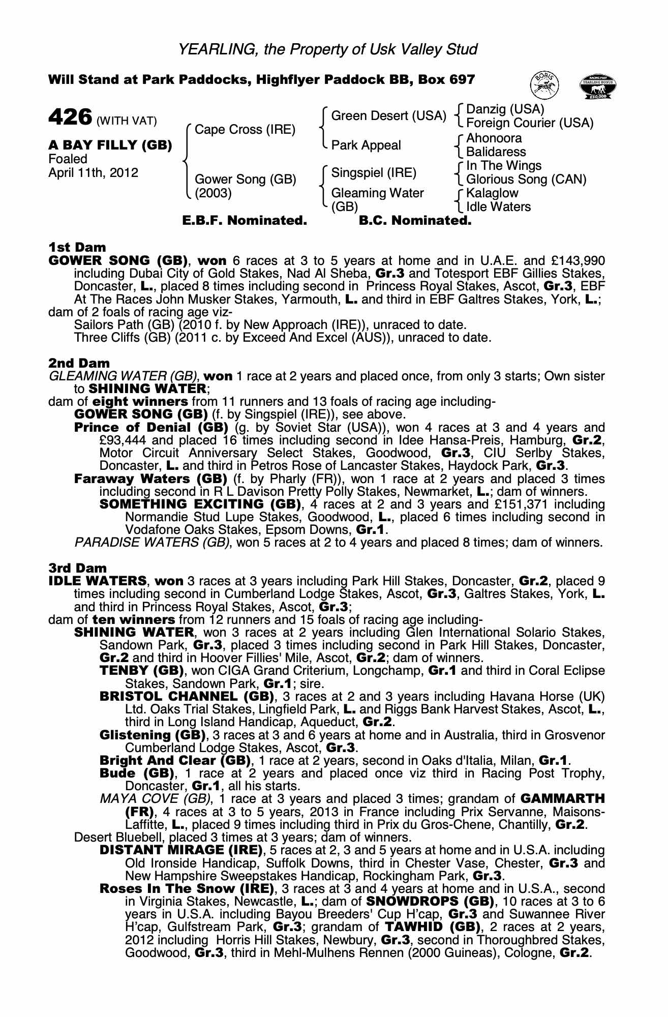 December Yearling Sale 2011 lot 90 F. by New Approach (IRE) 2010, Usk Valley Stud=>Richard Frisby Bloodstock 23,000 gns
