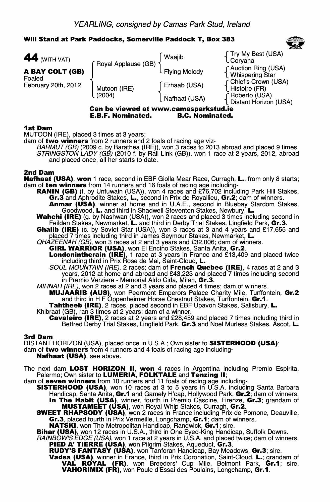 December Foal Sale 2012 lot 1169, Stringston Farm=>Camas Park Stud 55,000 gns