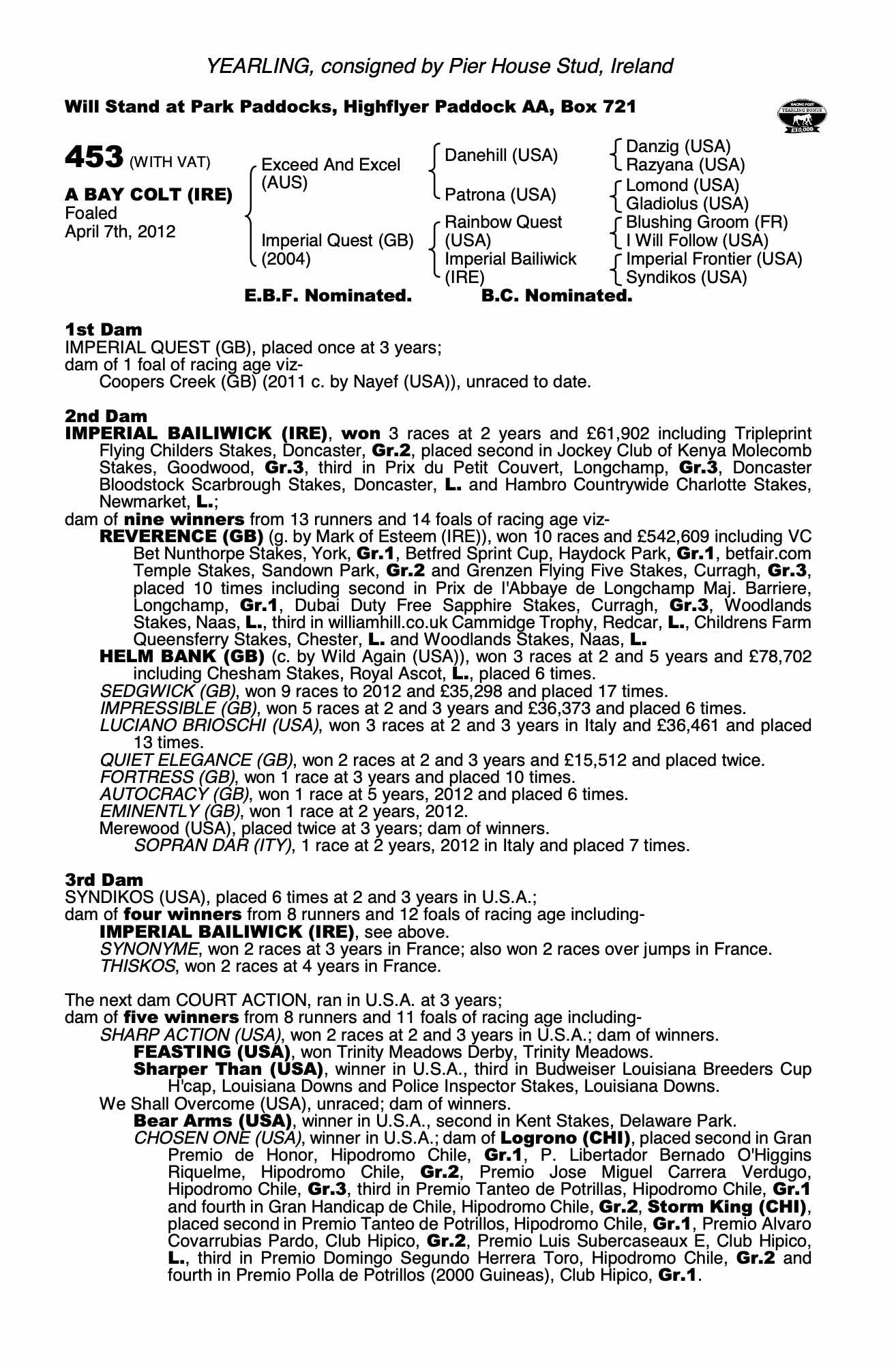 Consignor: Pier House Stud, Ireland