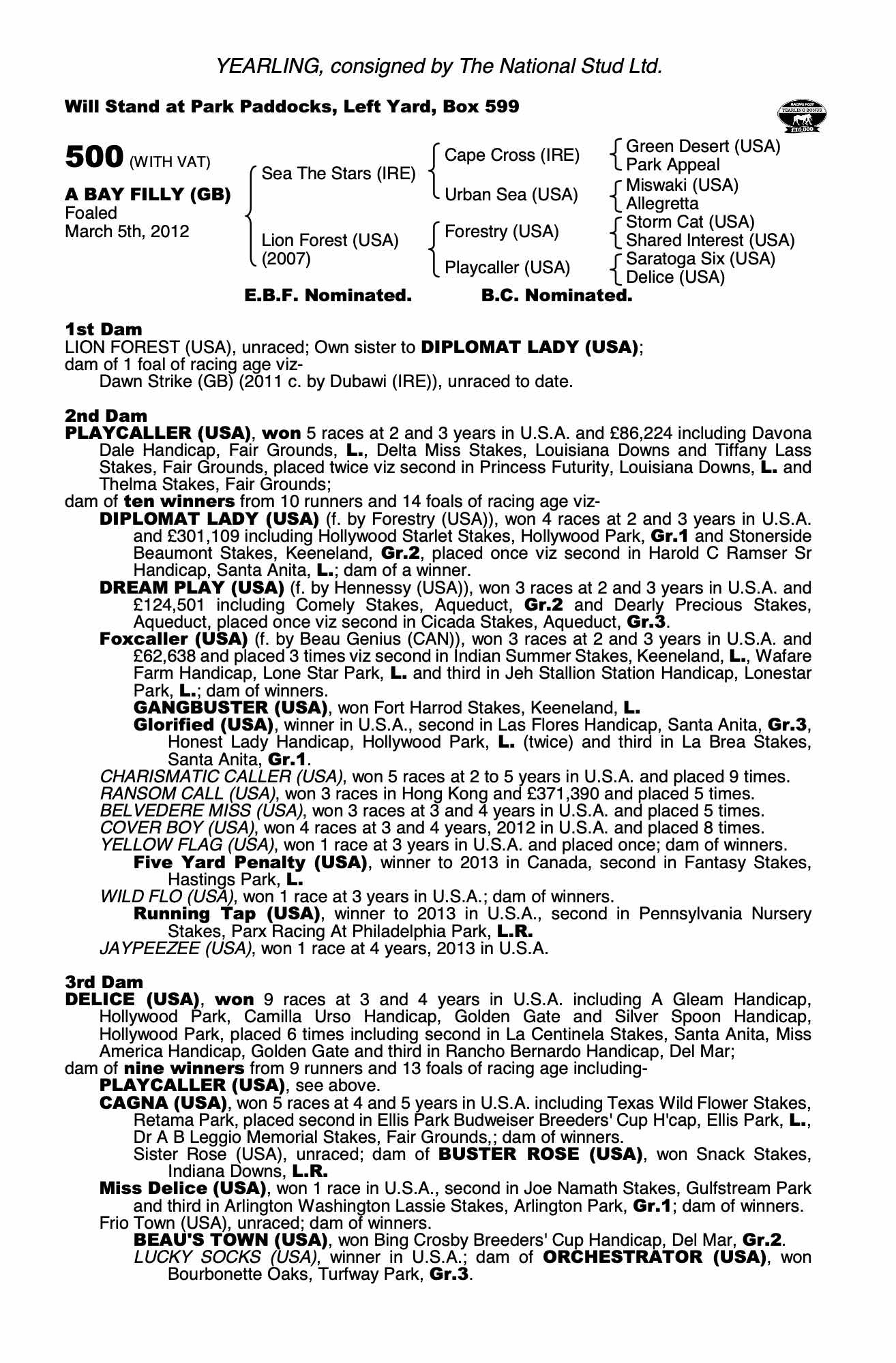 December Mare Sale 2015 lot 2311, Juddmonte Farms=>Five Stars Shipping Company 10,000 gns