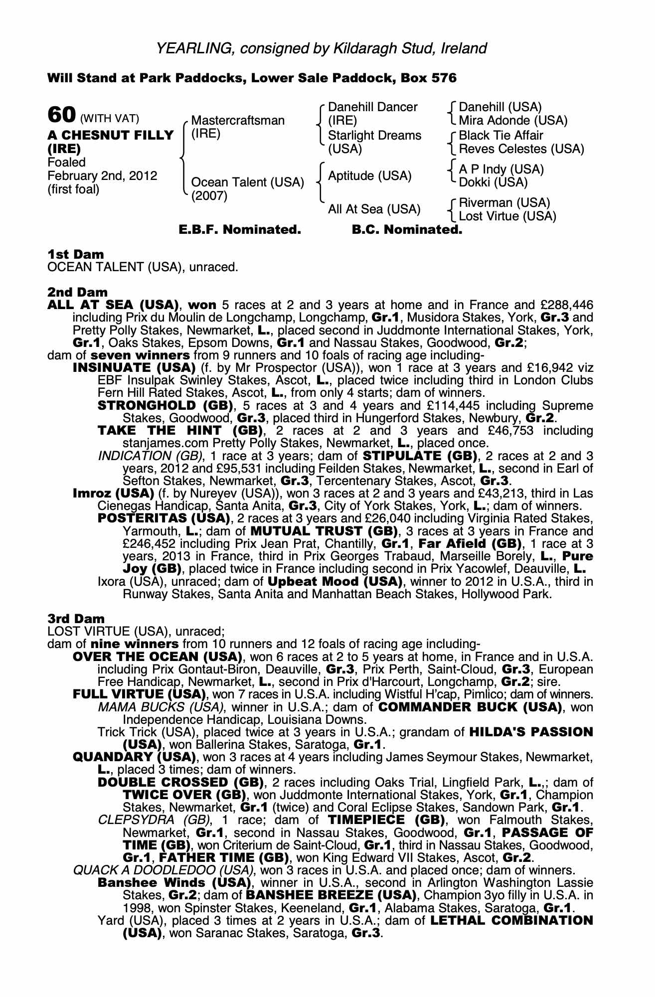 July Sale 2015 lot 86, Kildaragh Stud, Ireland (Agent)=>Michael Burke 5,000 gns
