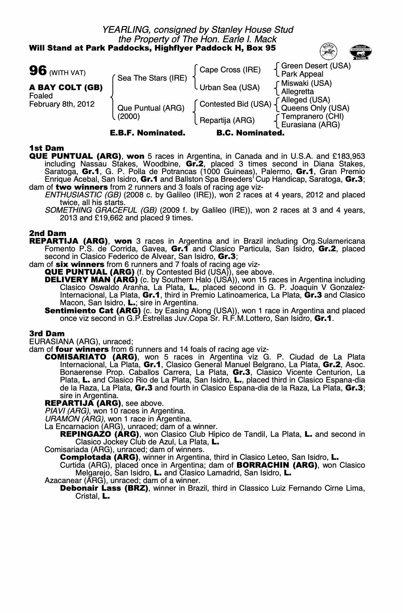Consignor: Stanley House Stud