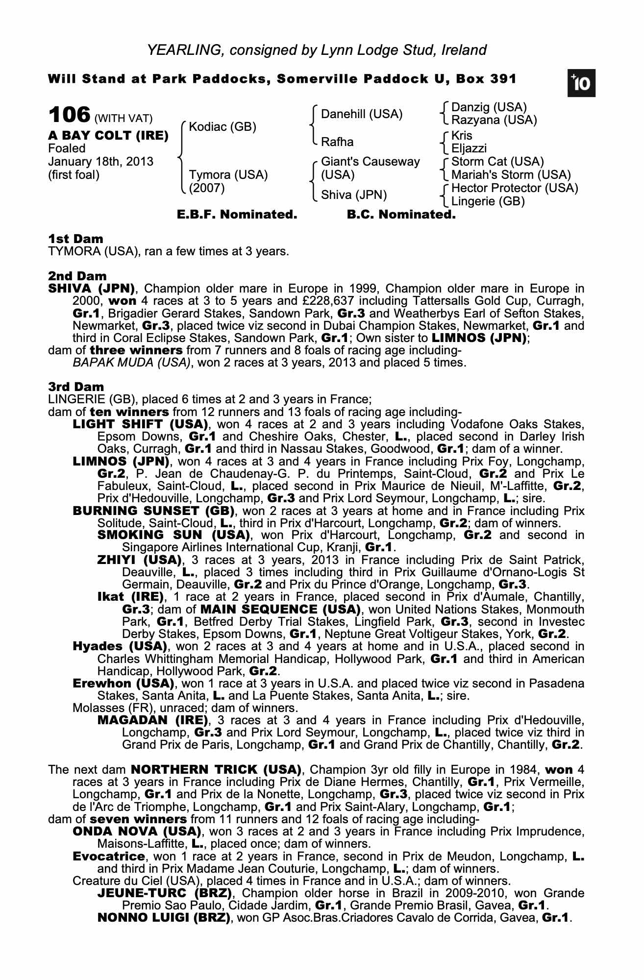 Under 3rd dam: SMOKING SUN (USA), placed second in La Coupe de Maisons-Laffitte, Maisons-Laffitte, Gr.3. MAIN SEQUENCE (USA), won Joe Hirsch Turf Classic Stakes, Belmont Park, Gr.1 and Sword Dancer Invitational Stakes, Saratoga, Gr.1.