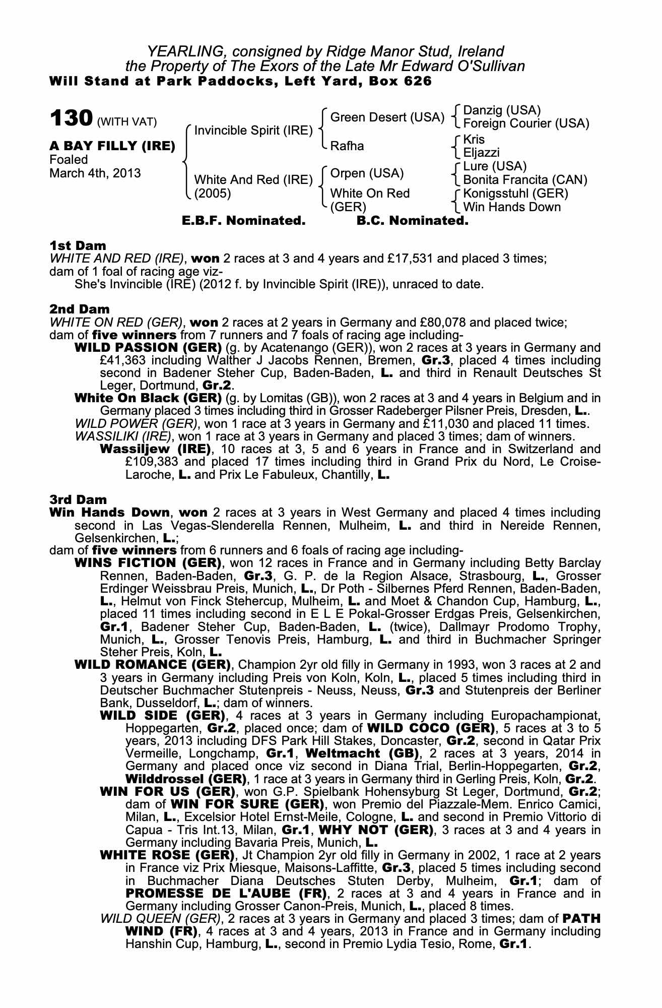 Invincible Spirit (IRE) / White And Red (IRE) B.F. (IRE)