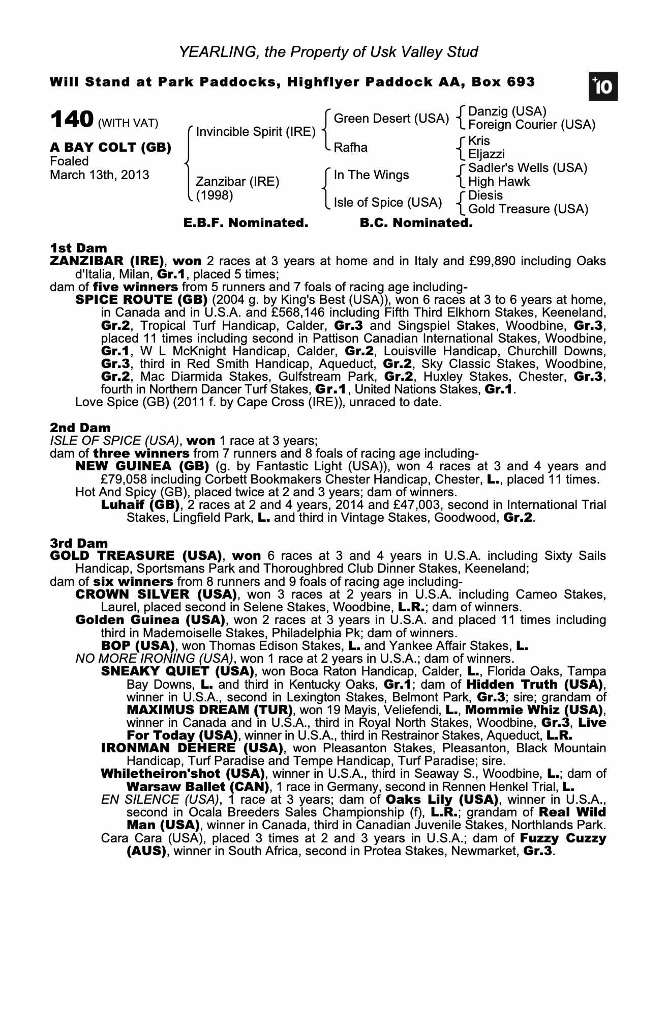 Invincible Spirit (IRE) / Zanzibar (IRE) B.C. (GB)