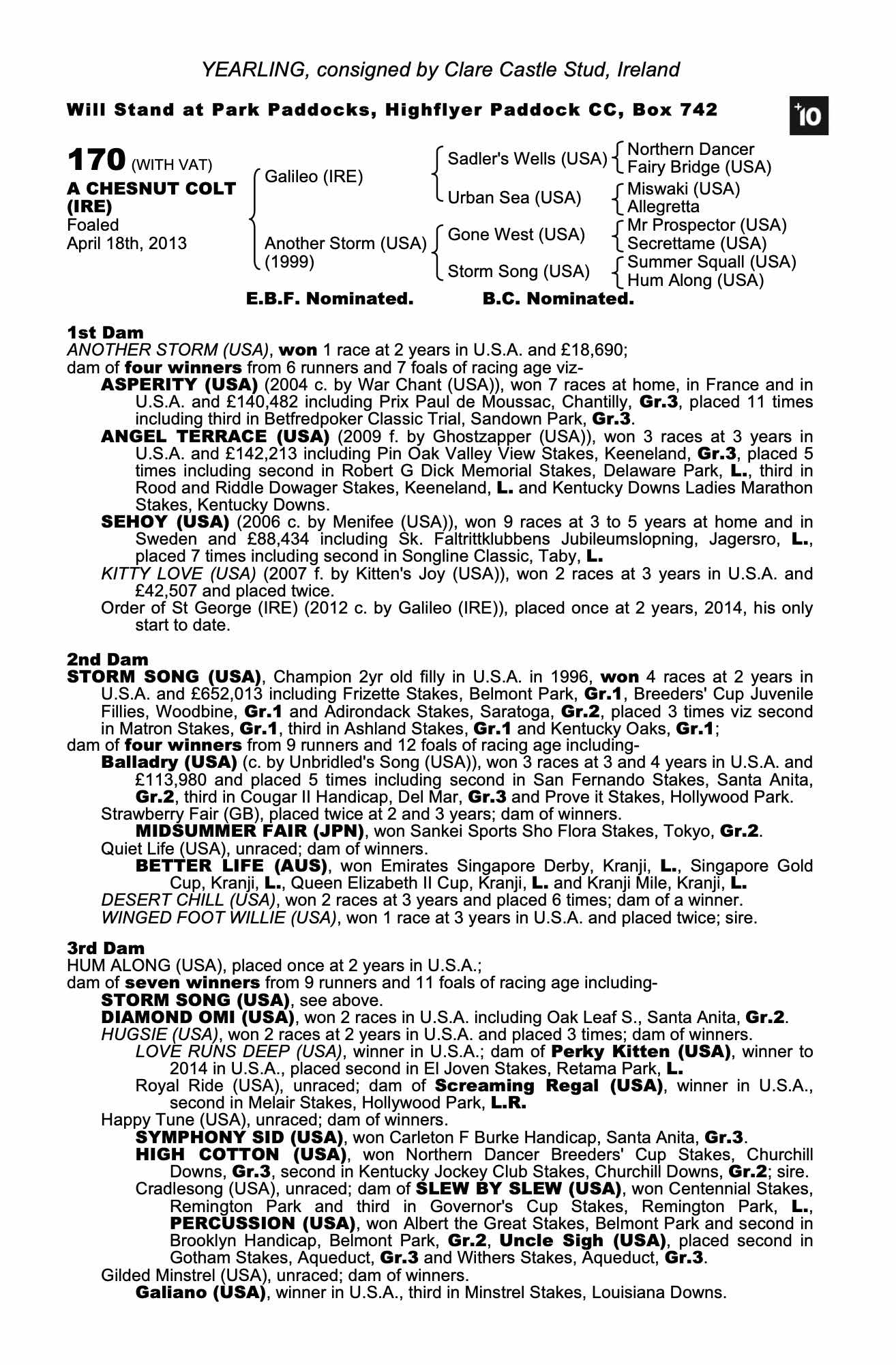 Consignor: Clare Castle Stud, Ireland