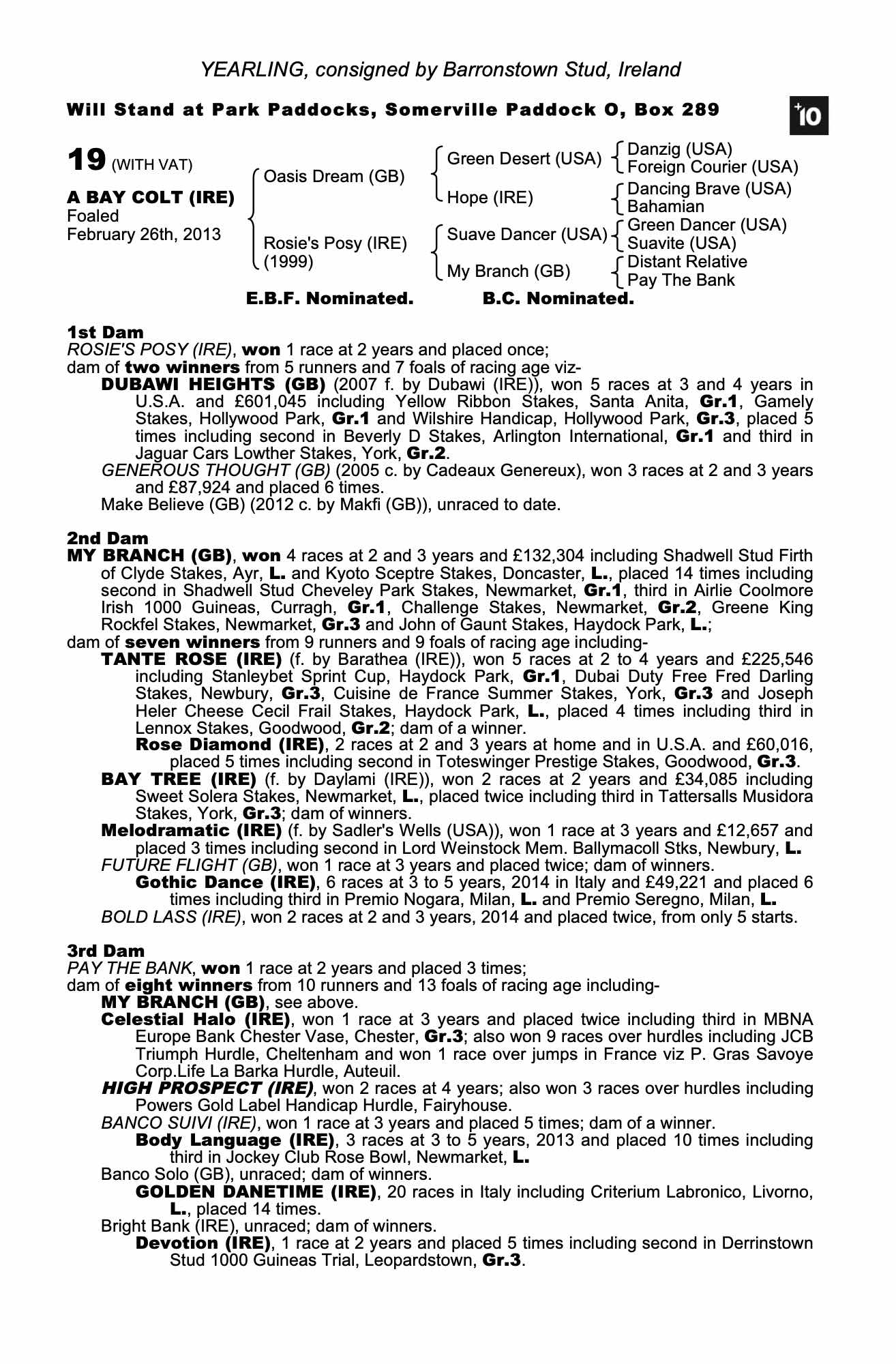 Online Charity Auction of Stallion Nominations lot 38 A Nomination to Make Believe (GB) (H. by Makfi (GB)), =>Bidding Closed £8,000