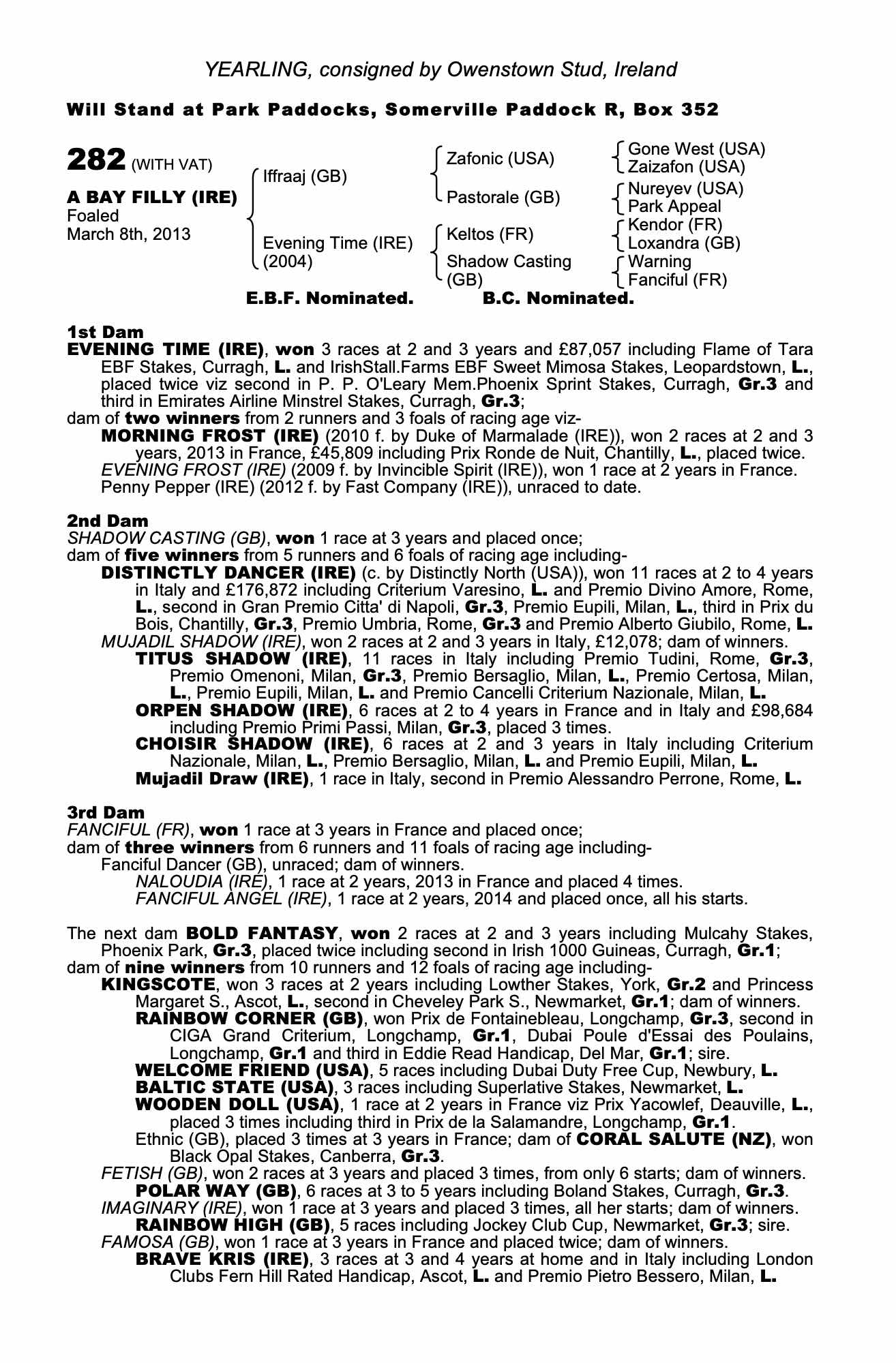 October Yearling Sale Book 1, 2015 lot 190 F. by Excelebration (IRE) 2014, Owenstown Stud, Ireland=>Emerald Bloodstock 30,000 gns