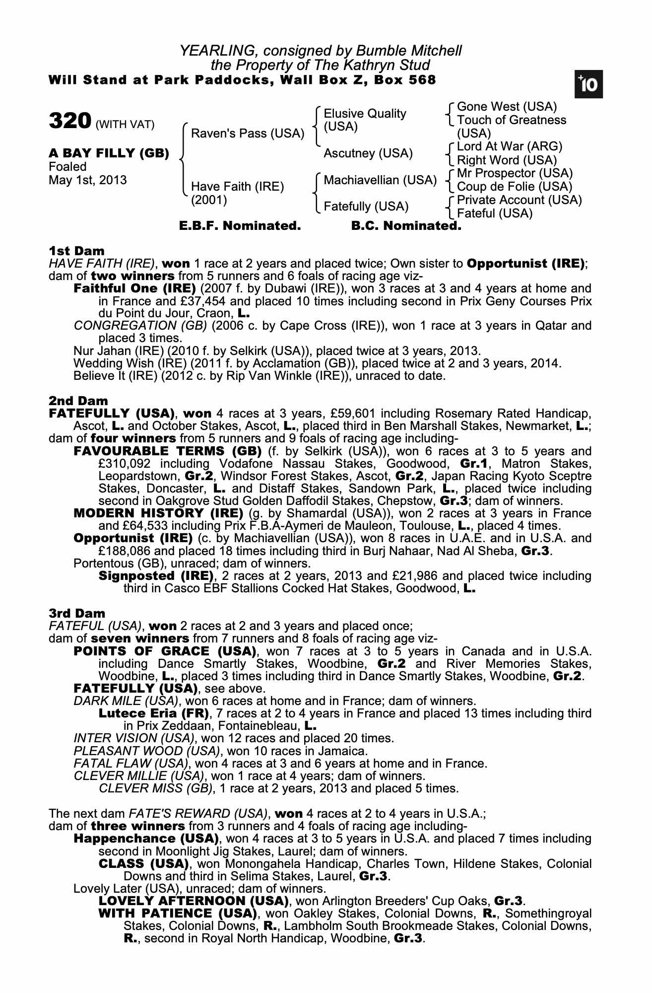 August Sale 2020 lot 251, Averham Park Stables (I. Furtado)=>Lot Not Sold 14,000 gns