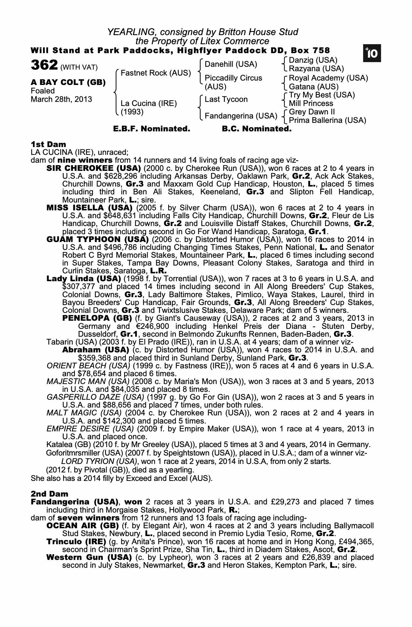 October Yearling Sale Book 1, 2015 lot 274 F. by Exceed And Excel (AUS) 2014, Britton House Stud=>John & Jake Warren 250,000 gns