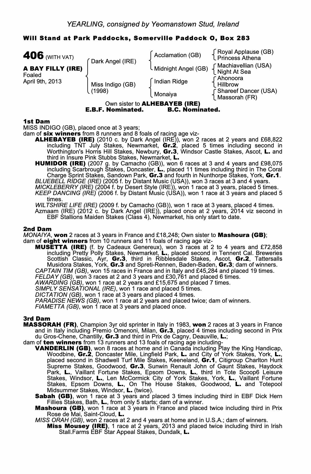 Consignor: Yeomanstown Stud, Ireland