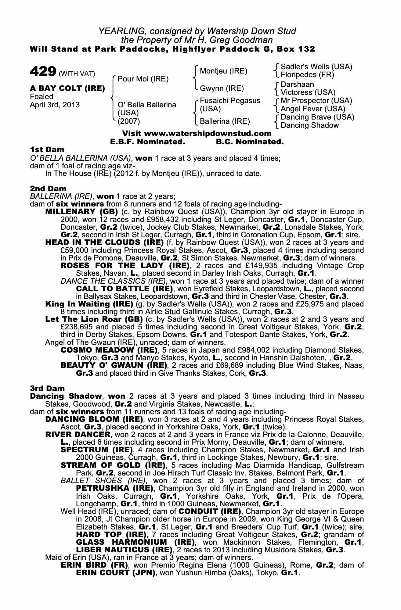 Flat Foal & Breeding Stock Sale 2019 lot 161 In The House (IRE) (M. by Montjeu (IRE)), Ballywalter Farm (Agent)=>Lot Not Sold
