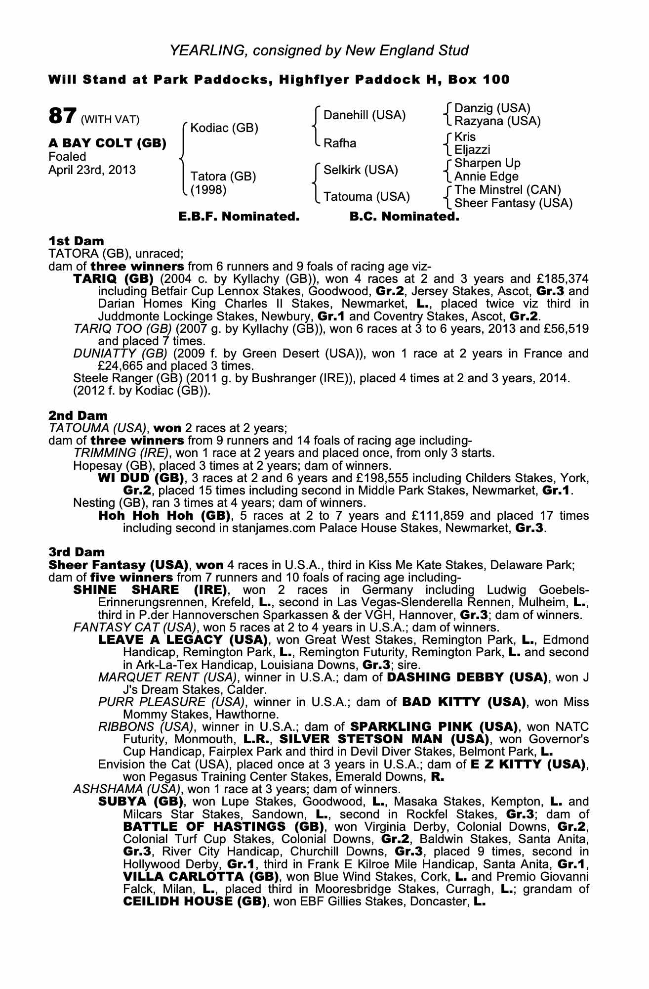 October Yearling Sale, Book 1 2007 lot 442 F. by Elnadim (USA) 2006, Tally-Ho Stud, Ireland=>Vendor 44,000 gns