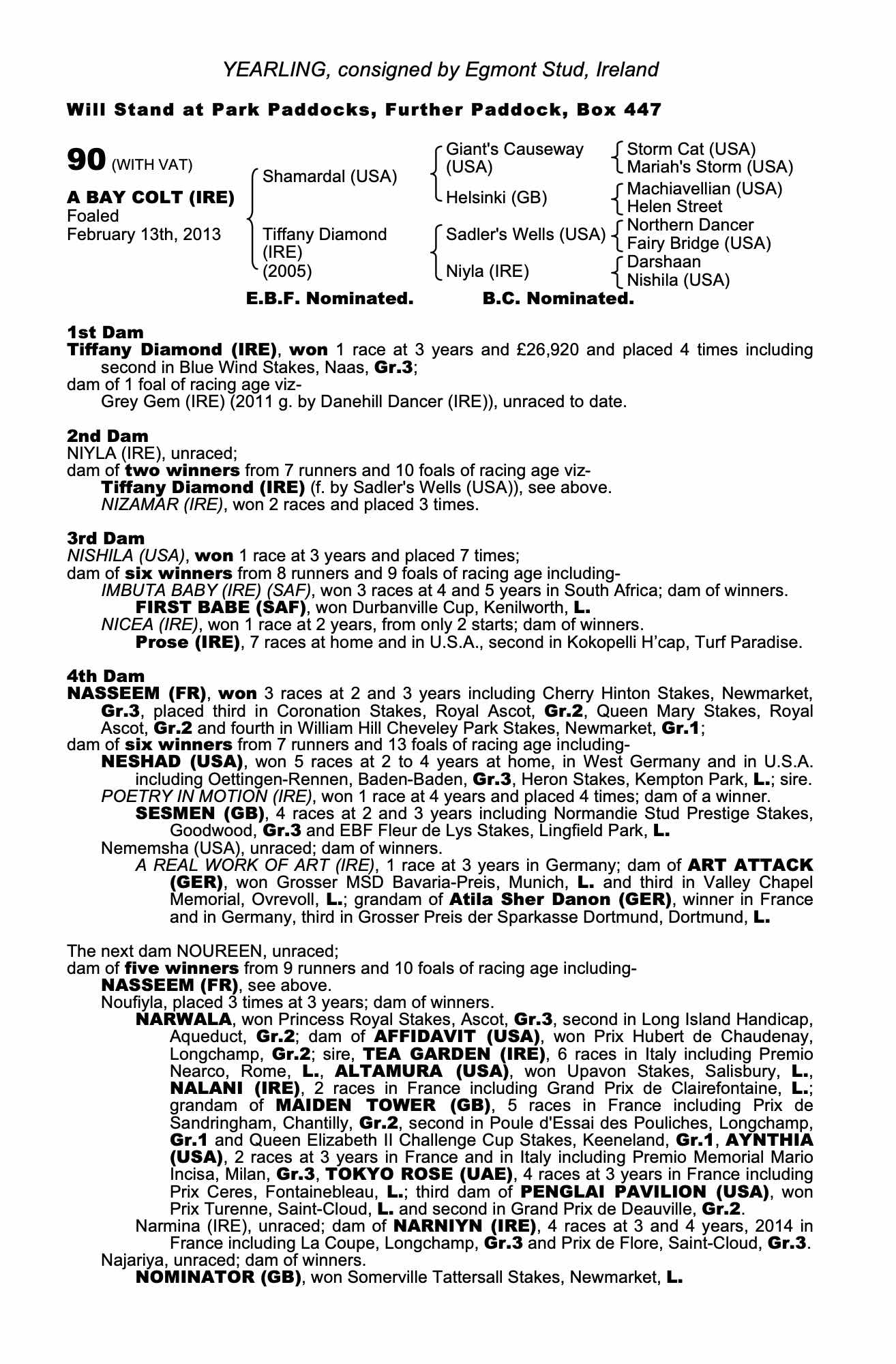 Consignor: Egmont Stud, Ireland