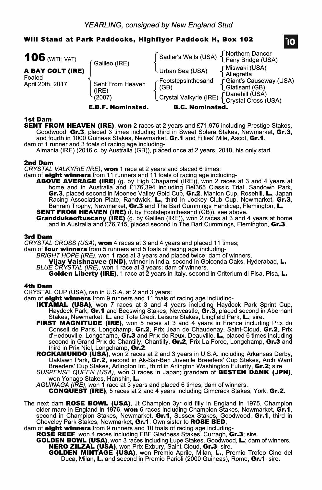 December Yearling Sale 2019 lot 4 C. 2018, New England Stud=>Johnston Racing 80,000 gns