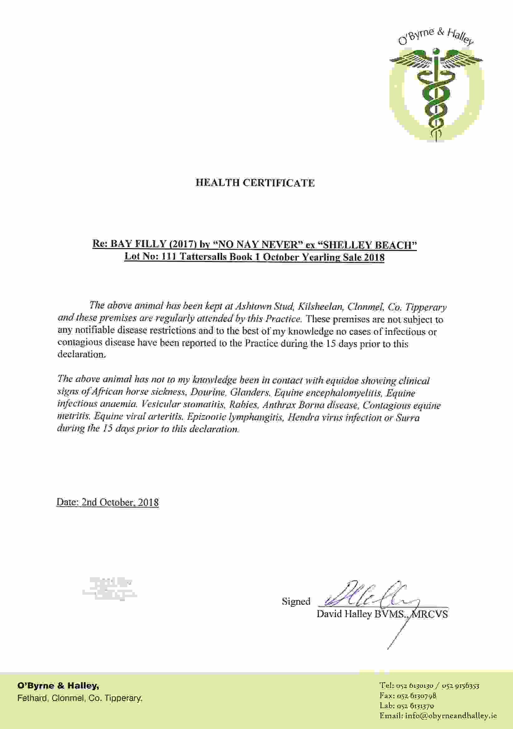 Lot 111 No Nay Never (USA) /Shelley Beach (IRE) B.F. (IRE)
