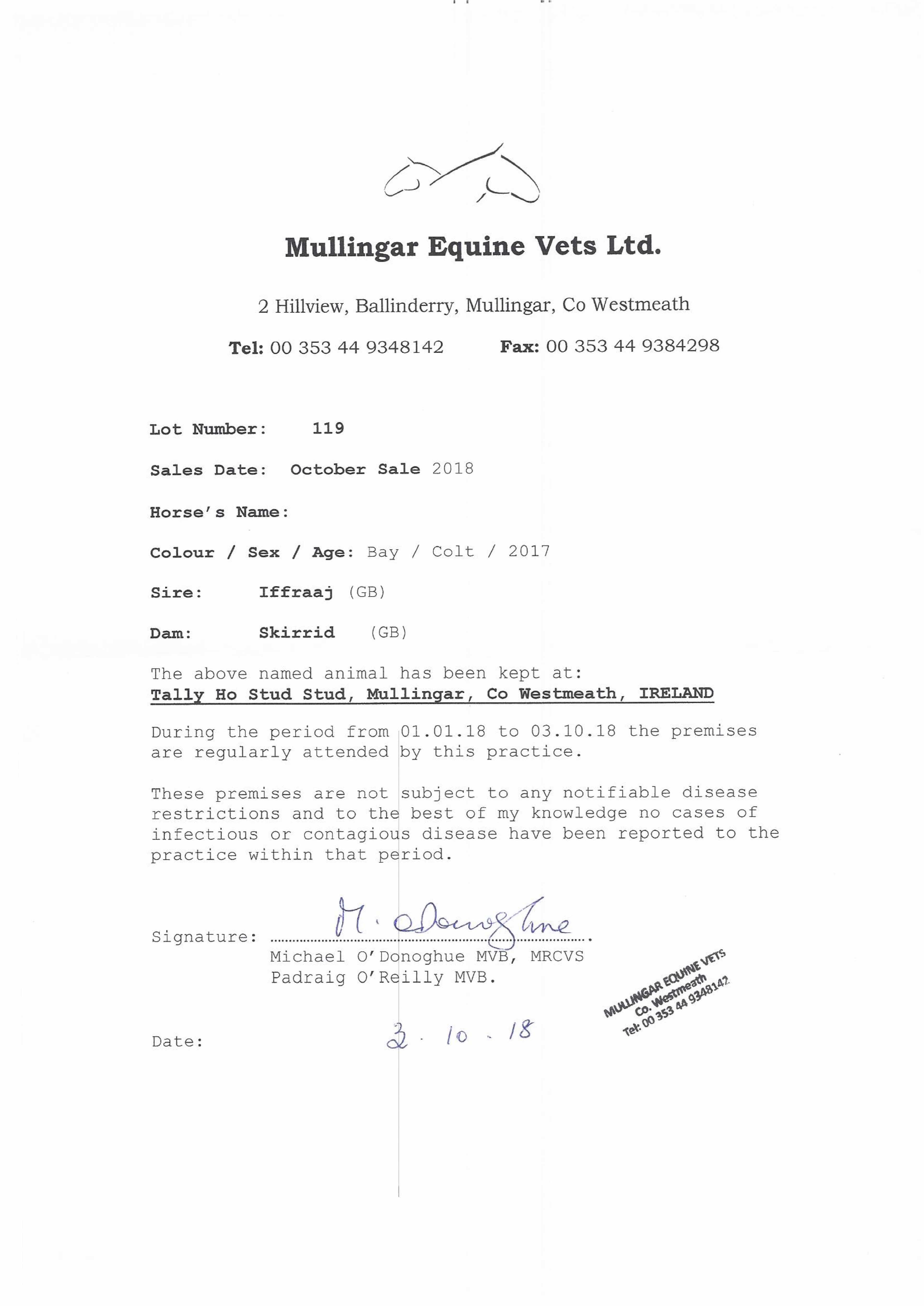 Consignor: Tally-Ho Stud, Ireland