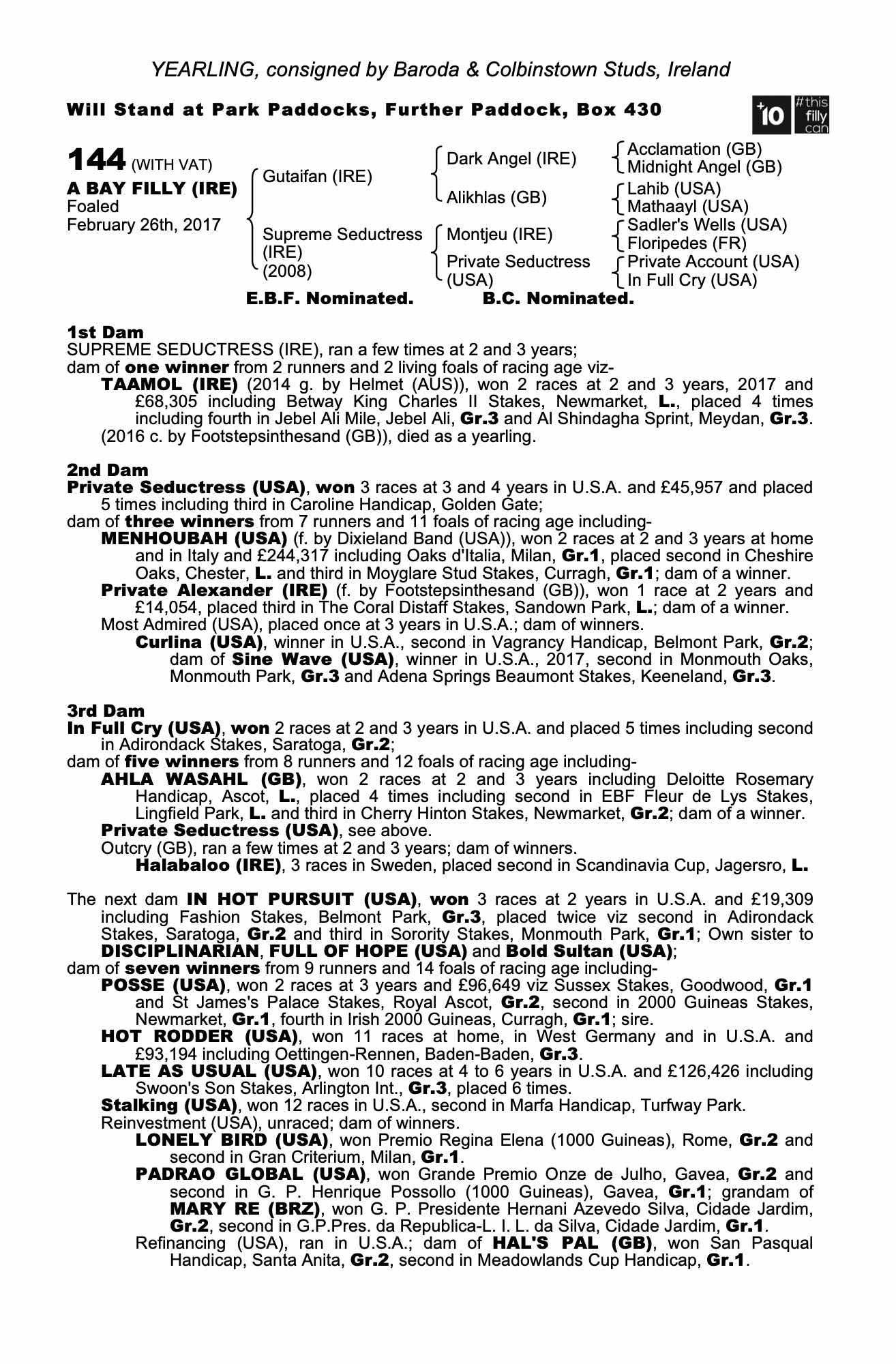 Consignor: Baroda & Colbinstown Studs, Ireland
