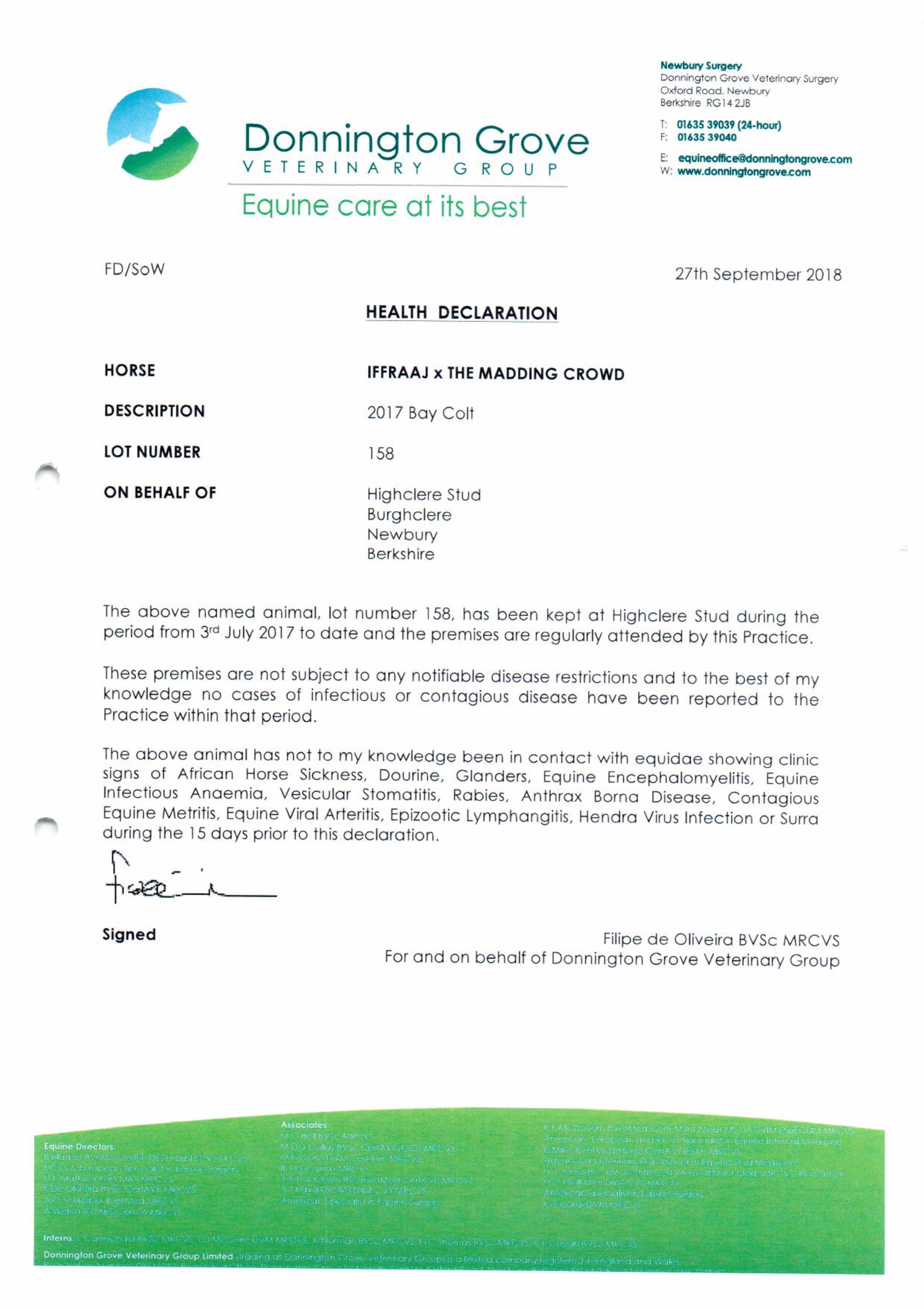 Consignor: Highclere Stud