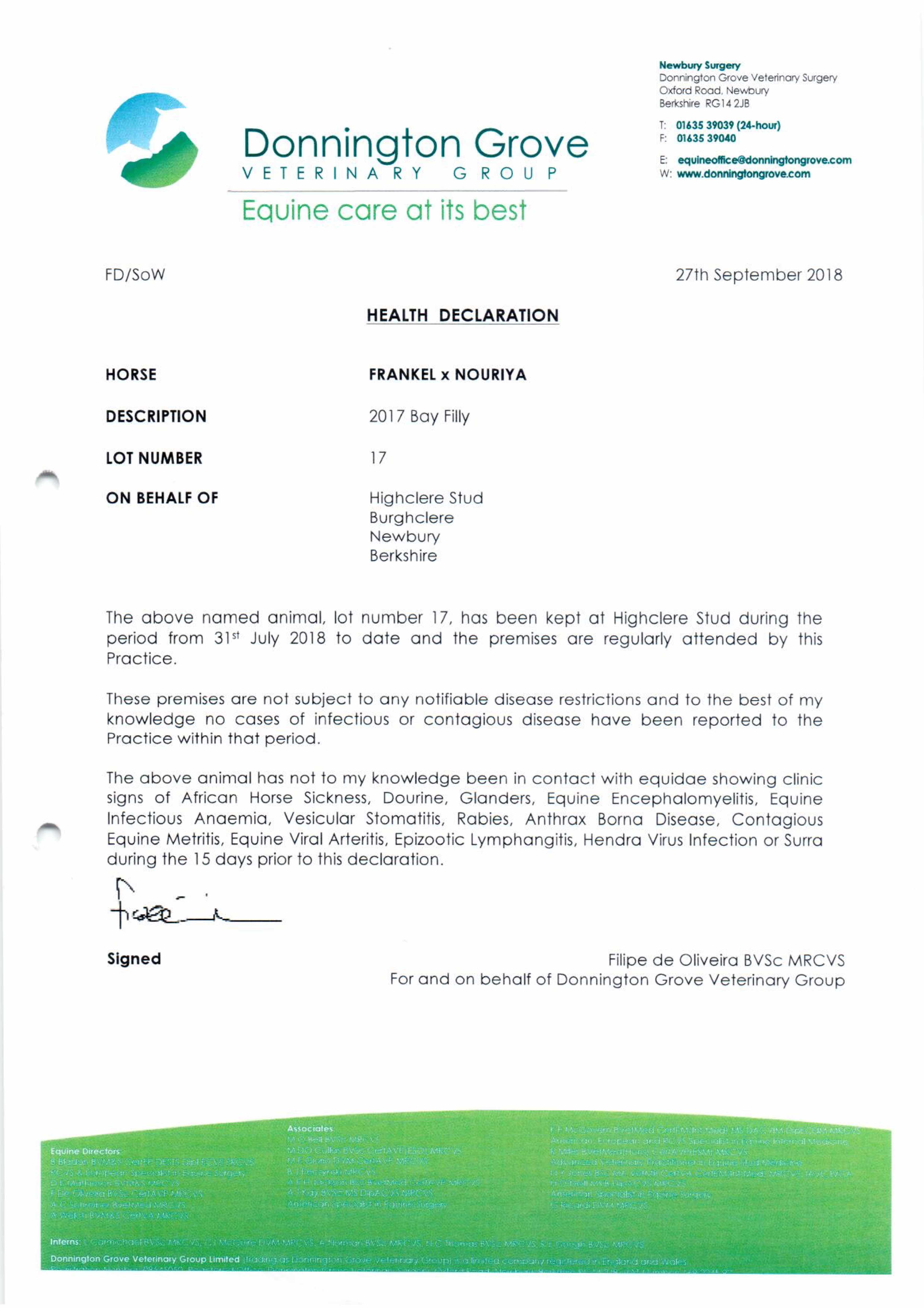 Consignor: Highclere Stud