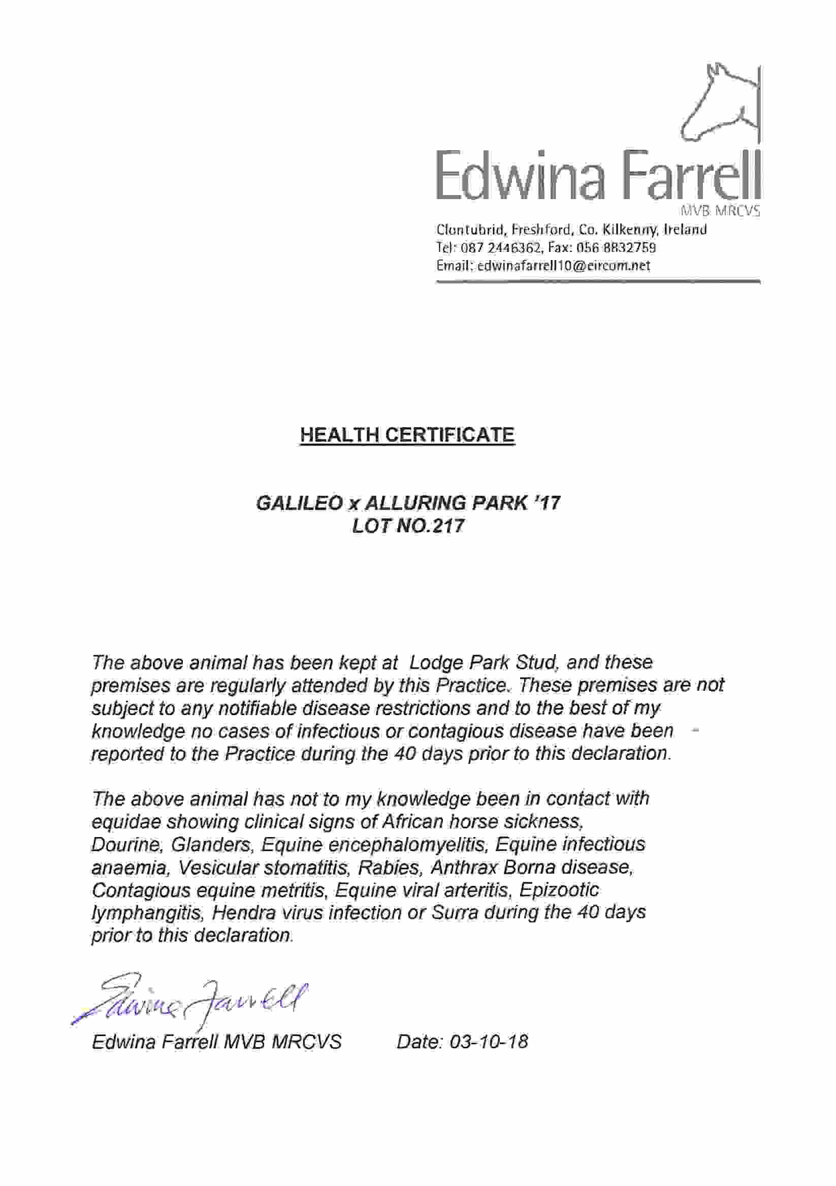 Consignor: Lodge Park Stud, Ireland