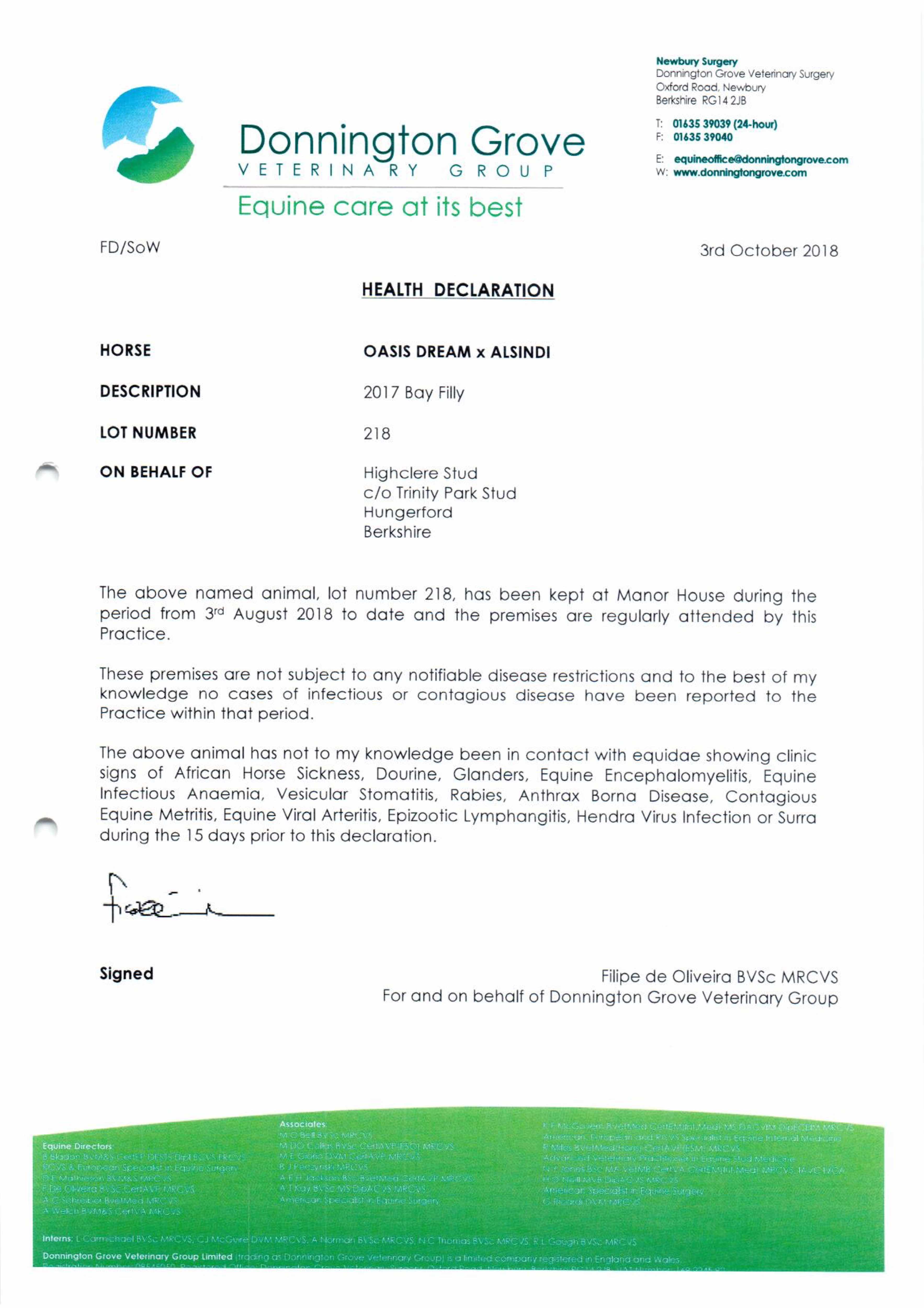 Consignor: Highclere Stud