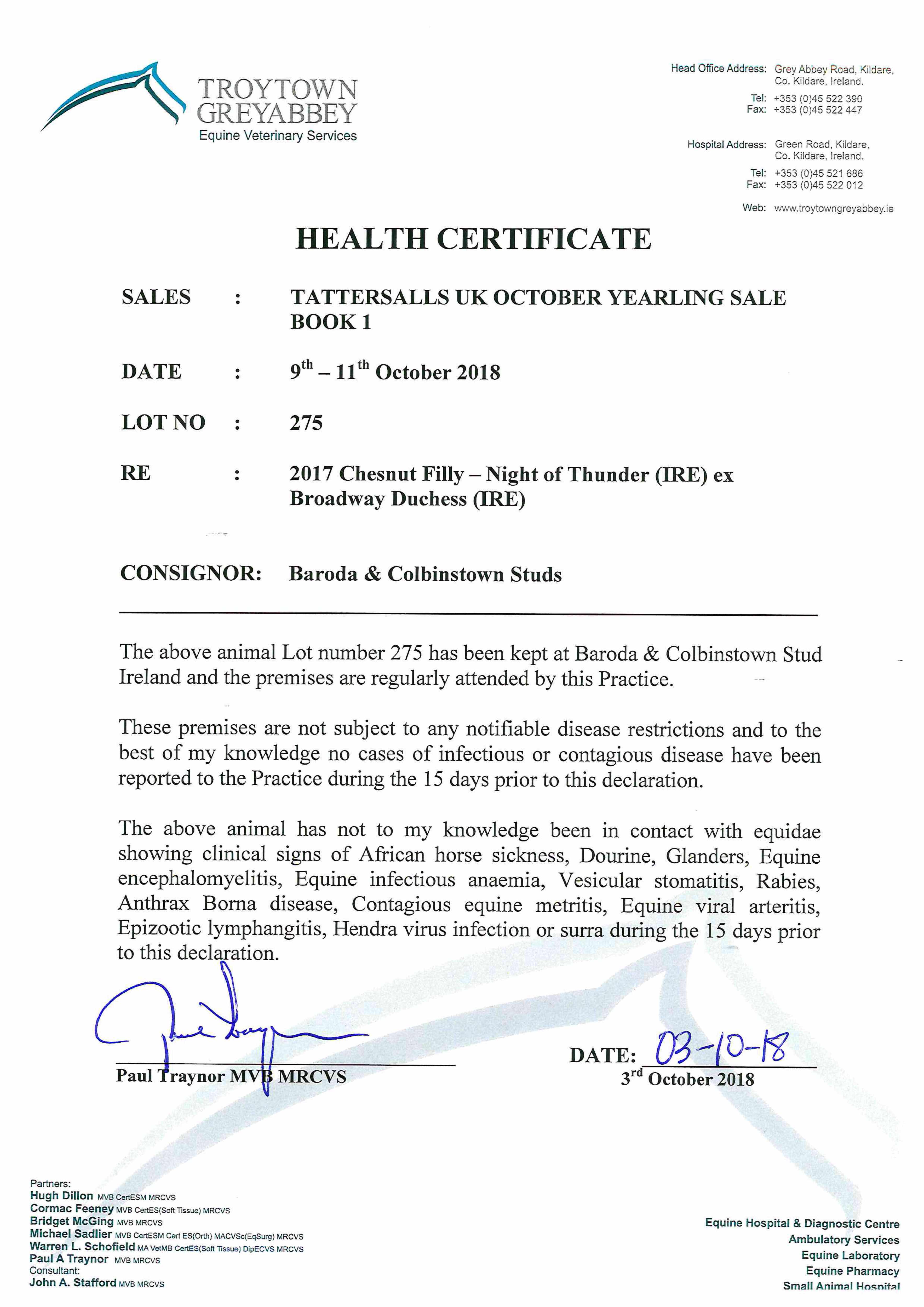 Consignor: Baroda & Colbinstown Studs, Ireland