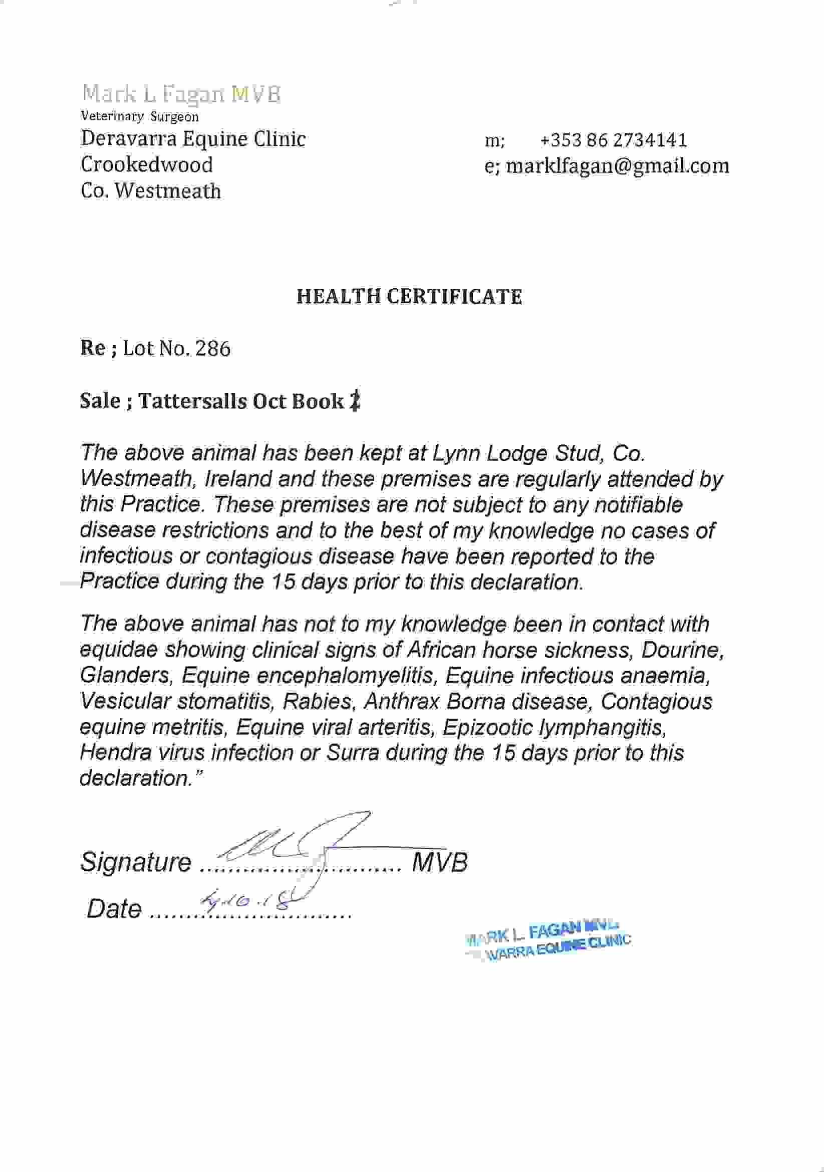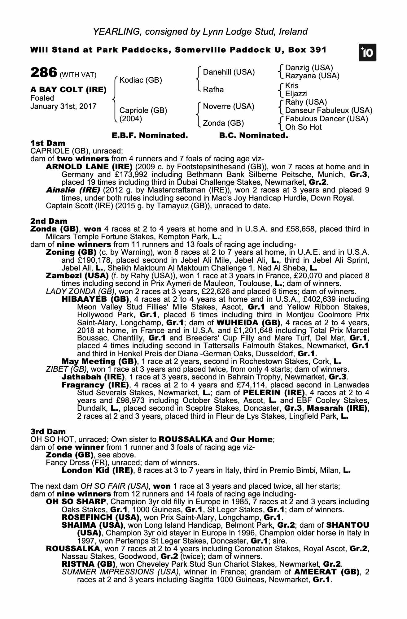 Consignor: Lynn Lodge Stud, Ireland