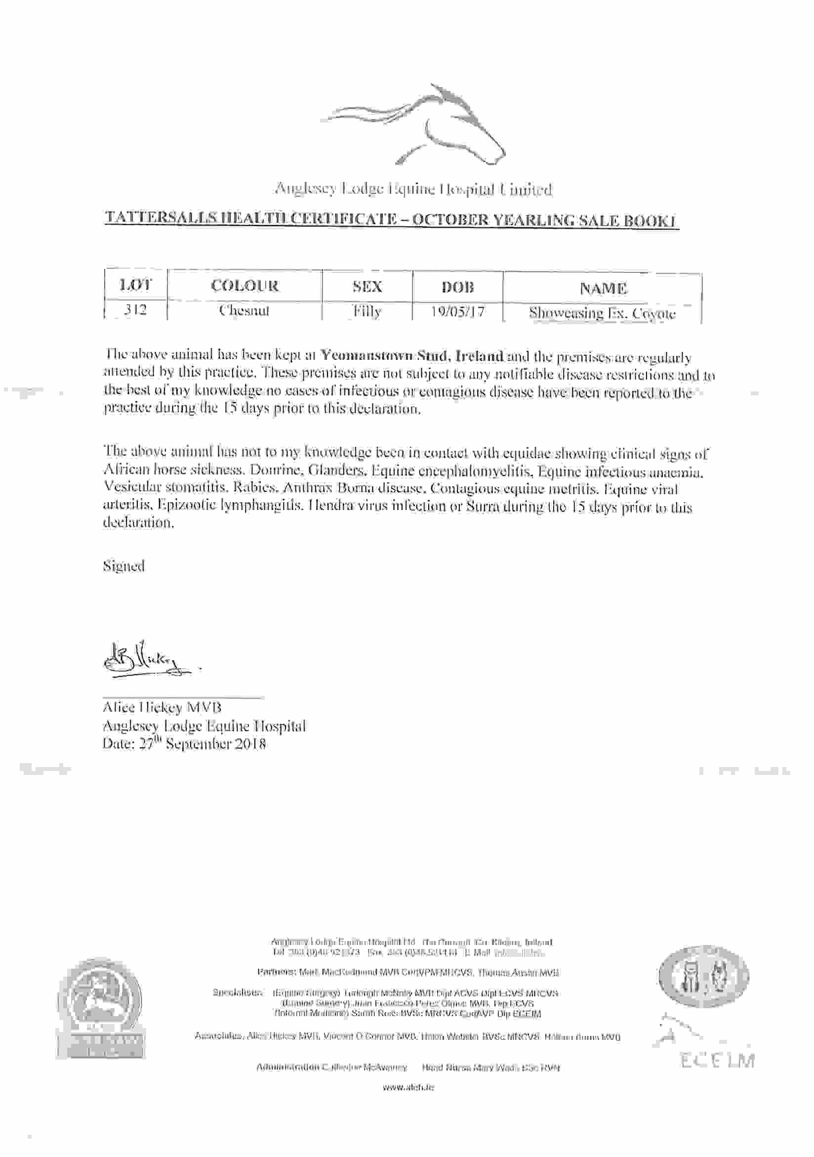 Consignor: Yeomanstown Stud, Ireland