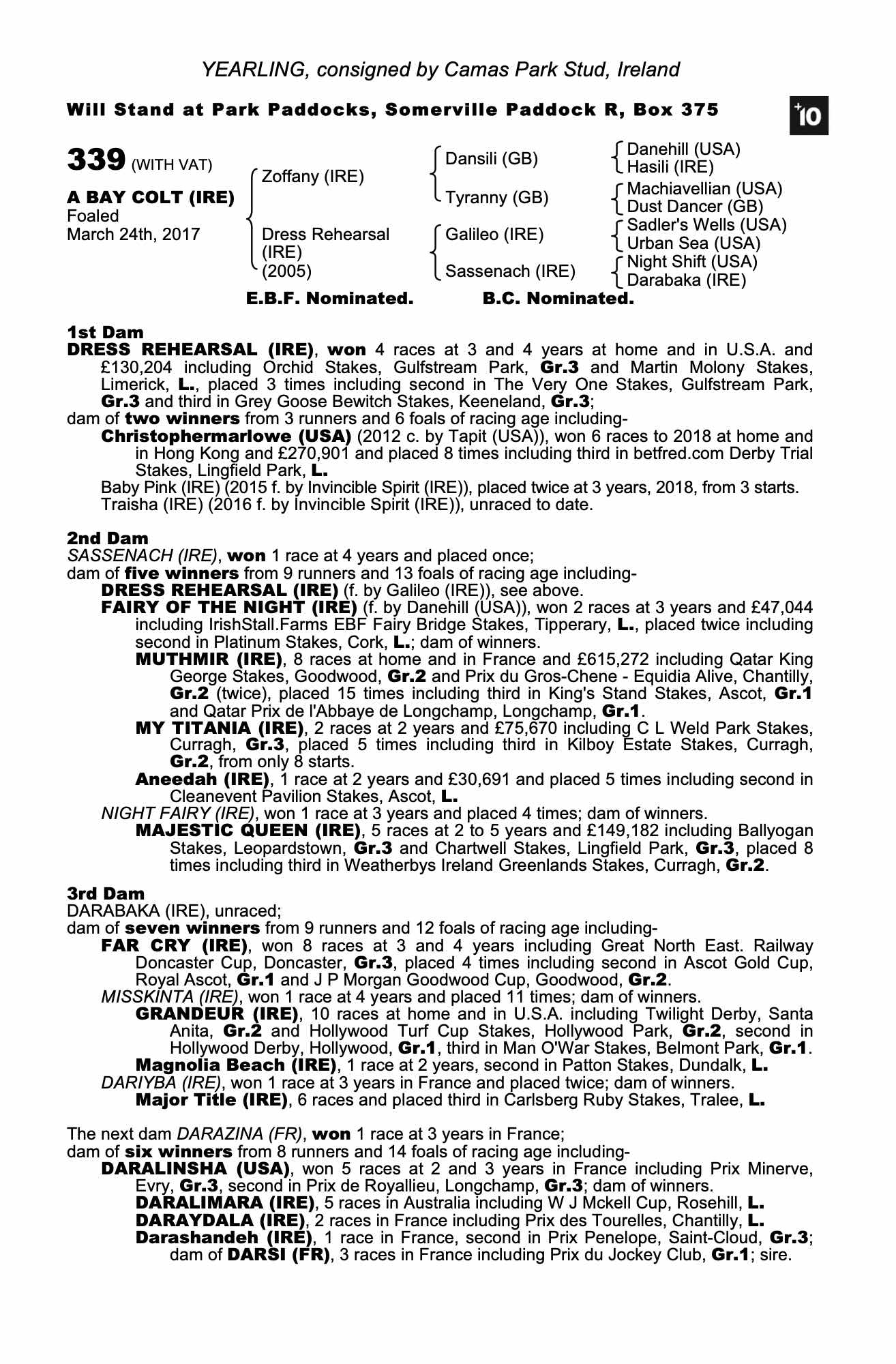 Consignor: Camas Park Stud, Ireland