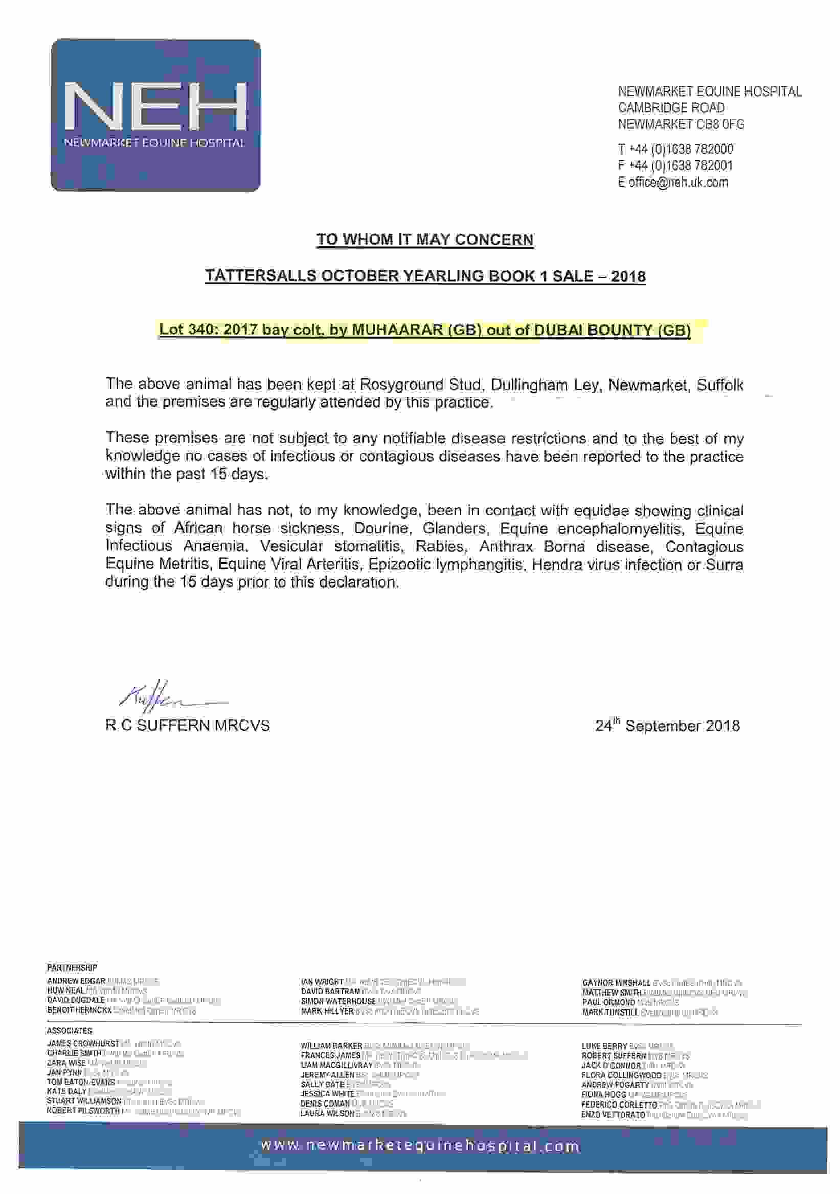October Yearling Sale, Book 2 2017 lot 1192 F. by Iffraaj (GB) 2016, Rosyground Stud=>Hugo Lascelles Agent 120,000 gns