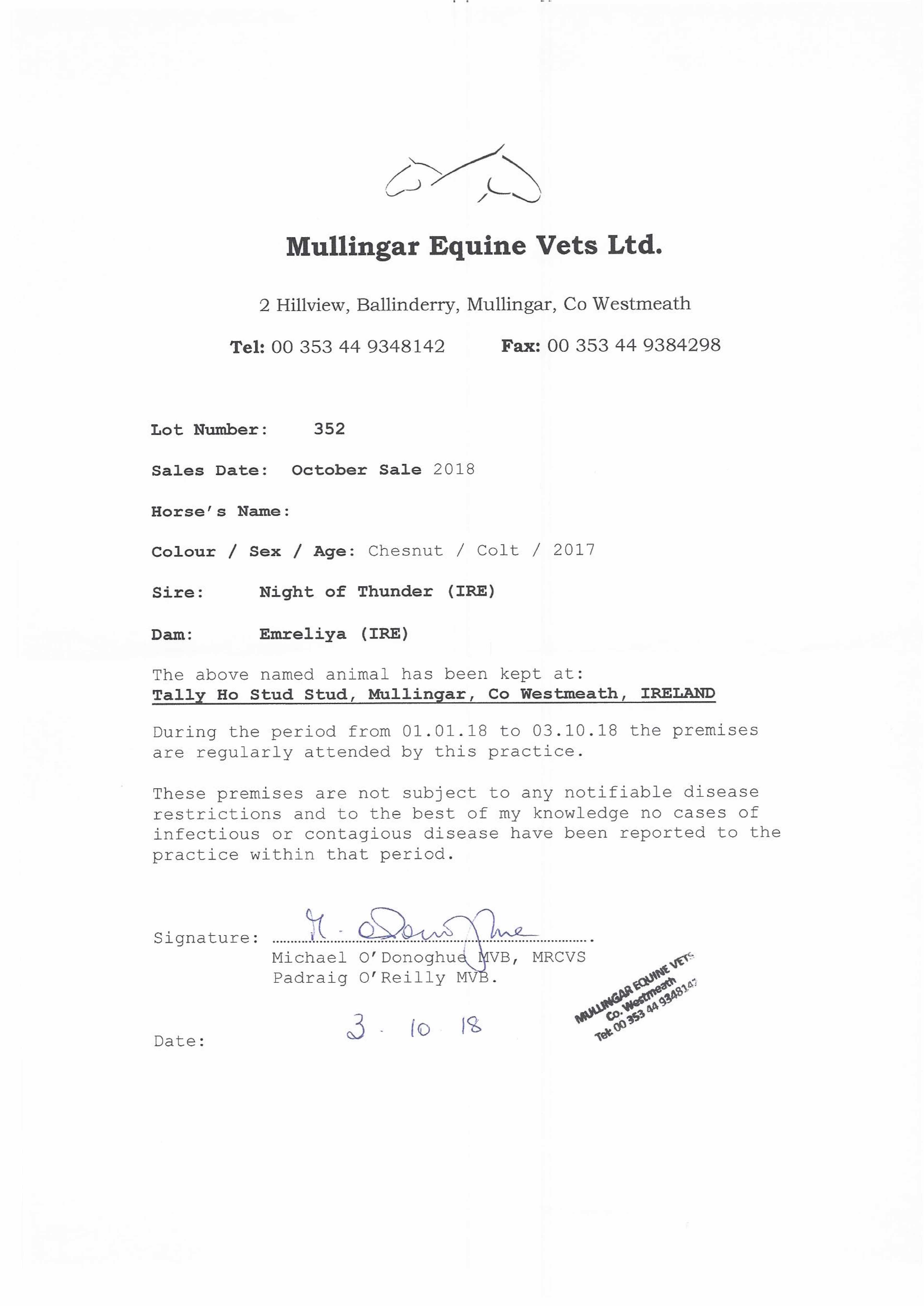 December Foal Sale 2021 lot 912 F. by Invincible Spirit (IRE) 2021, Oghill House Stud, Ireland=>Vendor 60,000 gns