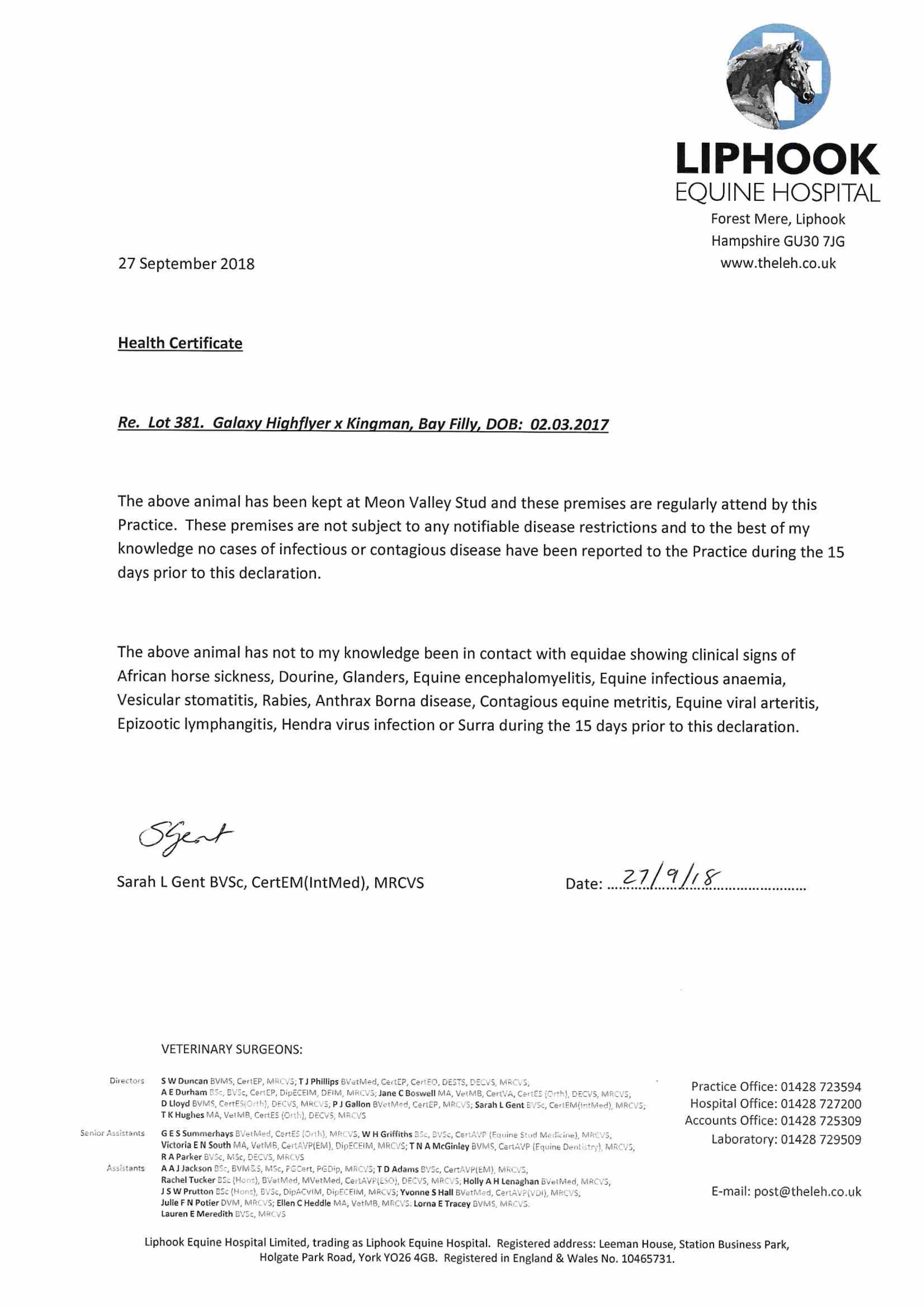 Consignor: Meon Valley Stud