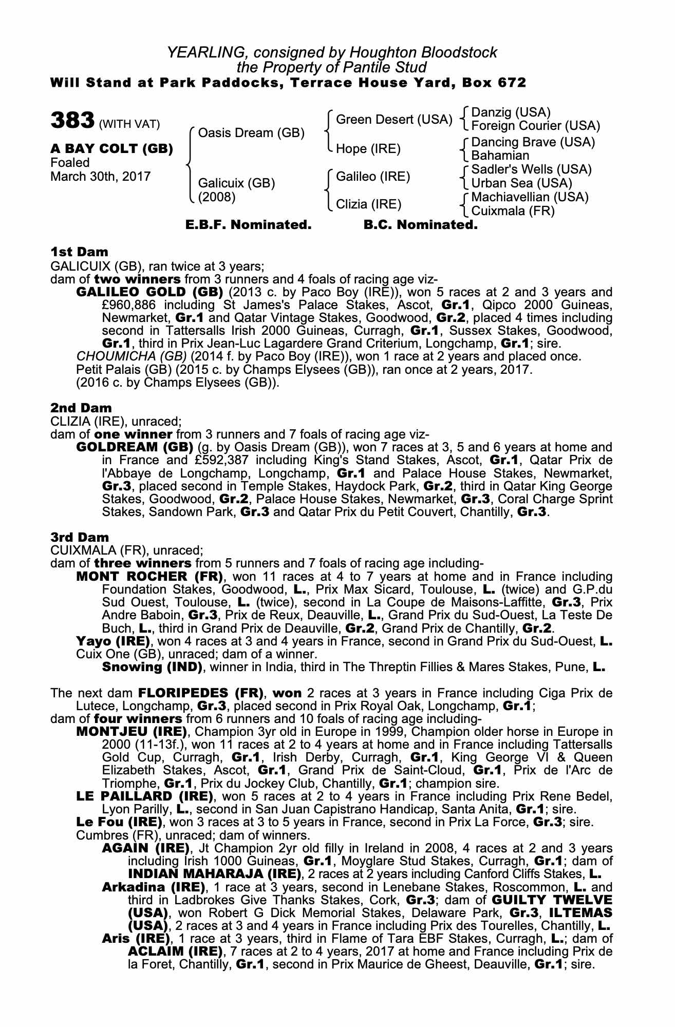 October Yearling Sale Book 1, 2017 lot 473 C. by Champs Elysees (GB) 2016, Houghton Bloodstock=>Lot Not Sold 120,000 gns